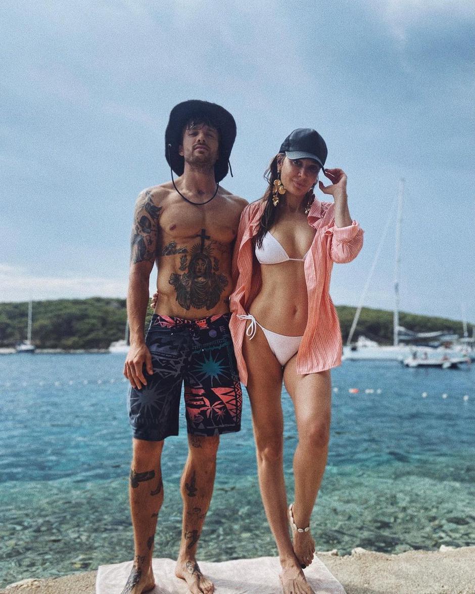 Tatjana je pozirala u bijelom dvodjelnom badiću koji joj je istaknuo isklesane trbušnjake, a pokrila se samo s rozom dugom košuljom. Na glavi je još imala kapu te velike zlatne naušnice. Njezin partner Vlaho pozirao je sa šeširom i šarenim kupaćim gaćama, a i on je oduševio svojim isklesanim tijelom.