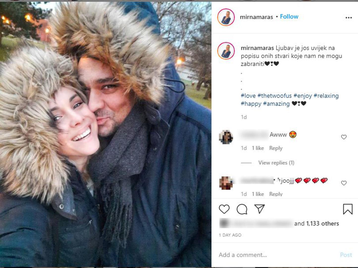 Inače, par je sudbonosno "da, uzimam" izgovorio u tajnosti u restoranu u centru Zagreba 2016. godine. Prethodno tomu, Mirna je bila s poznatim fitness trenerom i bivšim glumcem Mariom Valentićem. S njim je 2007. sklopila brak u tajnosti na Mljetu, te su u braku koji je trajao skoro šest godina dobili sina.