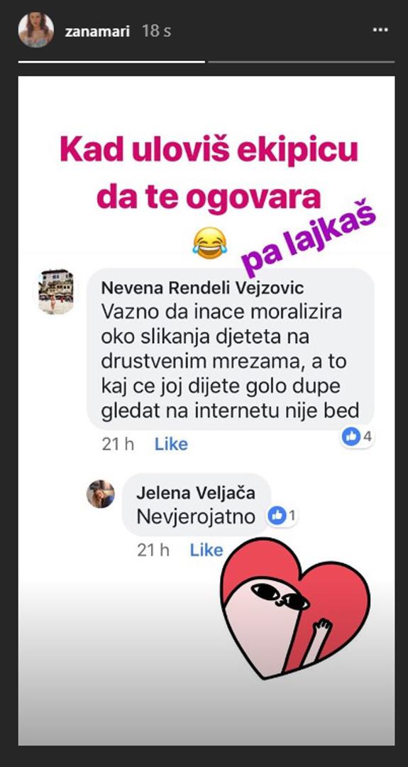 – Kad uloviš ekipicu da te ogovara pa lajkaš – napisala je Žanamari uz presliku komentara glumice i voditeljice.