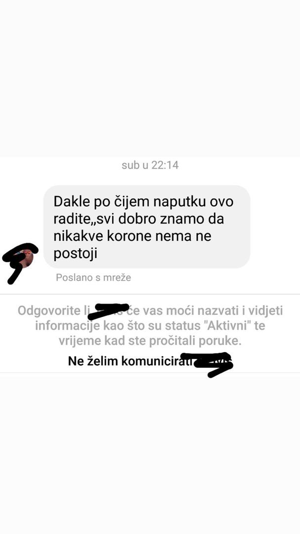 "Dakle, po čijem naputku ovo radite? Svi dobro znamo da nikakve korone nema, ne postoji", "Tu priču možeš prodavati ovcama bez mozga. Smrtnost bolesti je 0.26%", "Rasplakao sam se. Jako dirljiv tekst. Šest dana u temperaturi, molit ću za vas i vaš život, gospođo. A vi molite za one zaista teško bolesne", pisalo je u komentarima upućenim voditeljici.