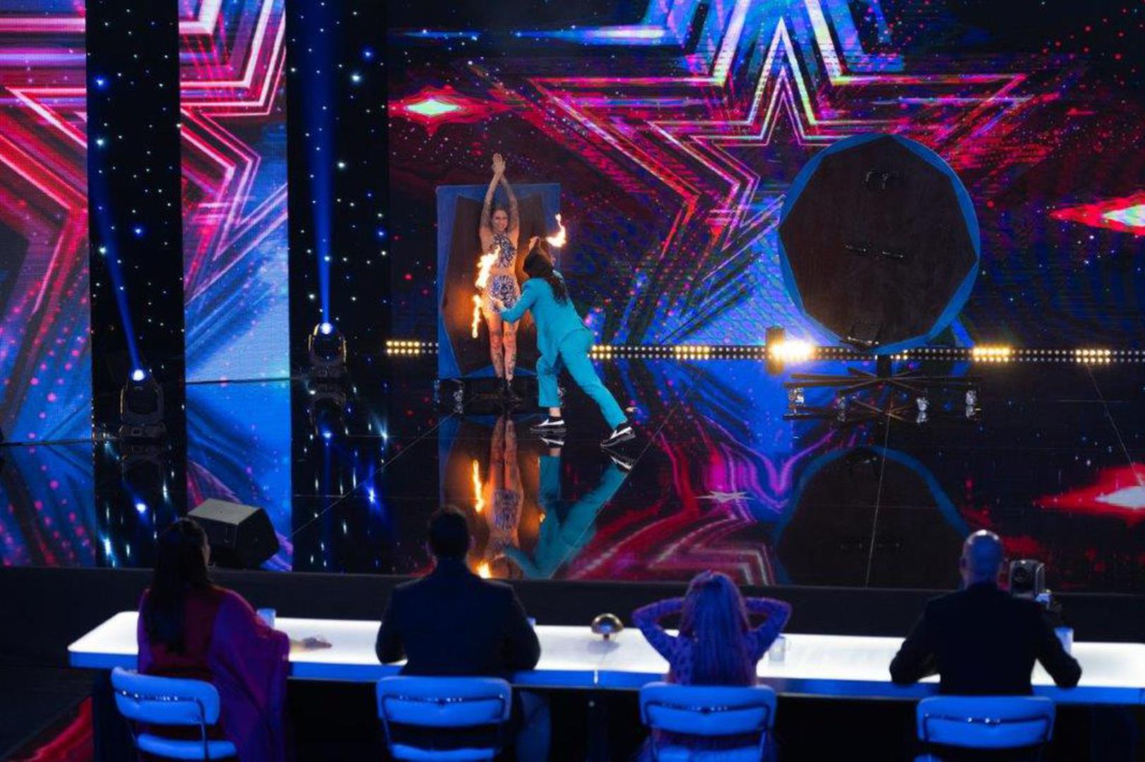 Par je krenuo s opasnim bacanjem noževa tijekom kojeg su Martina i Maja sklanjale pogled s pozornice, a onda je krenuo show s vatrom. Noževe koje gore Nebor je bacao s crnom platnenom vrećom na glavi, a svi su uredno završili oko njegove partnerice.