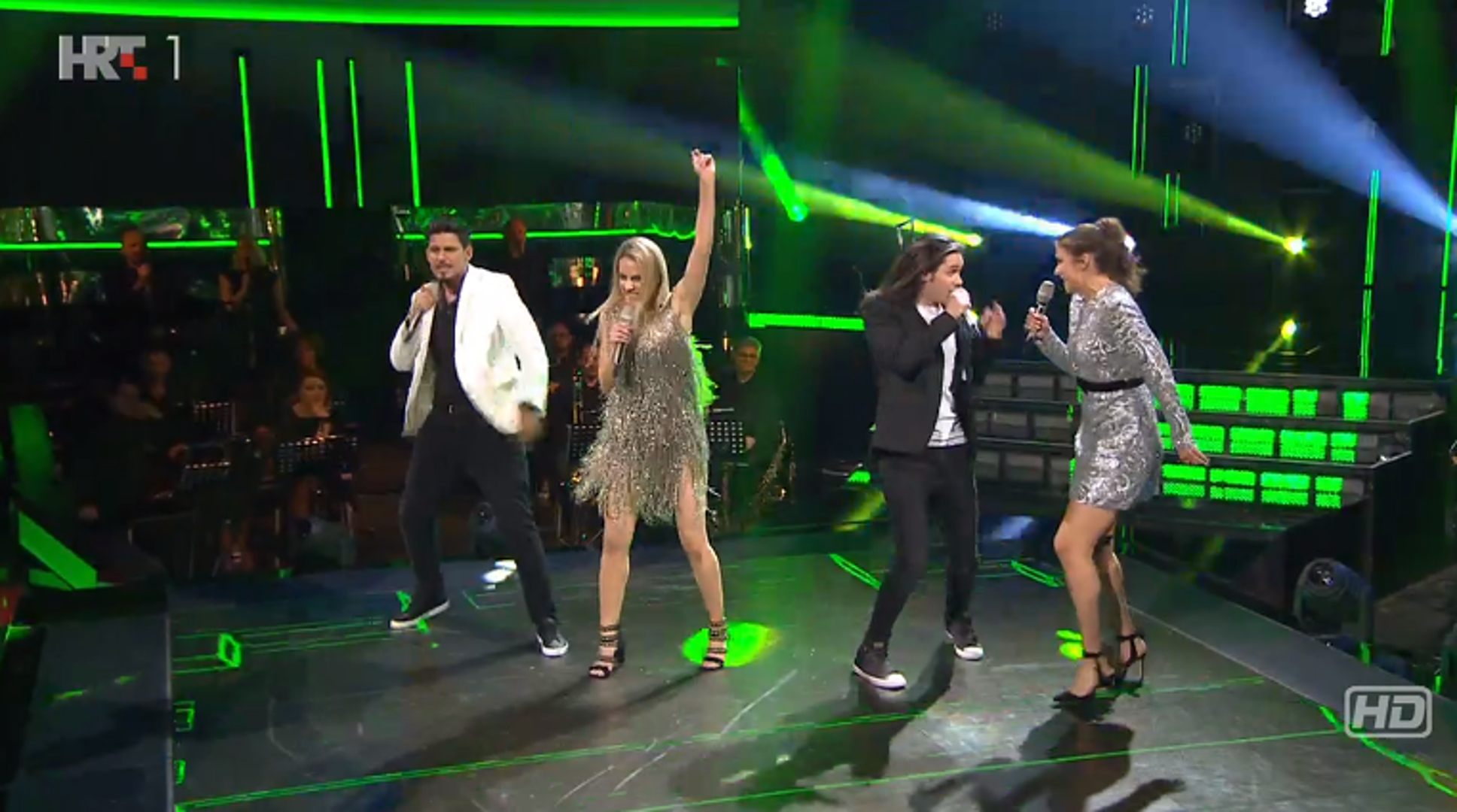 21:40 U tijeku je glasovanje publike, a finalisti su se popeli na pozornicu da zajedno otpjevaju legendarni 'Program tvog kompjutera' od elektro sastava Denis & Denis.