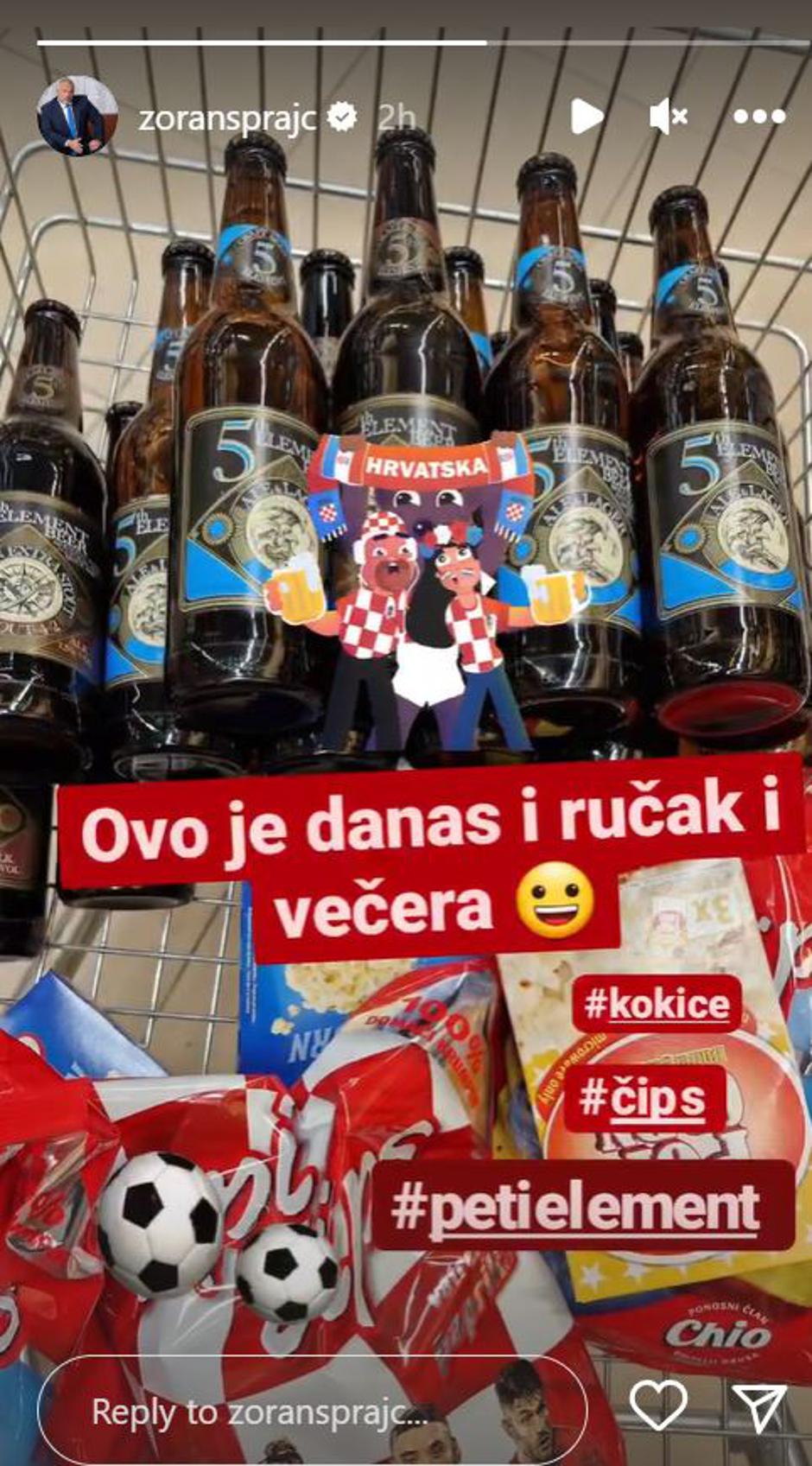 Urednik i voditelj 'Stanja nacije', emisije koja se prikazuje na RTL-u, Zoran Šprajc (54) na društvenim mrežama često objavljuje neke detalje iz privatnog života. Sada je pokazao kako se priprema za gledanje utakmice naše reprezentaciji u polufinalu Svjetskog prvenstva protiv Argentine.