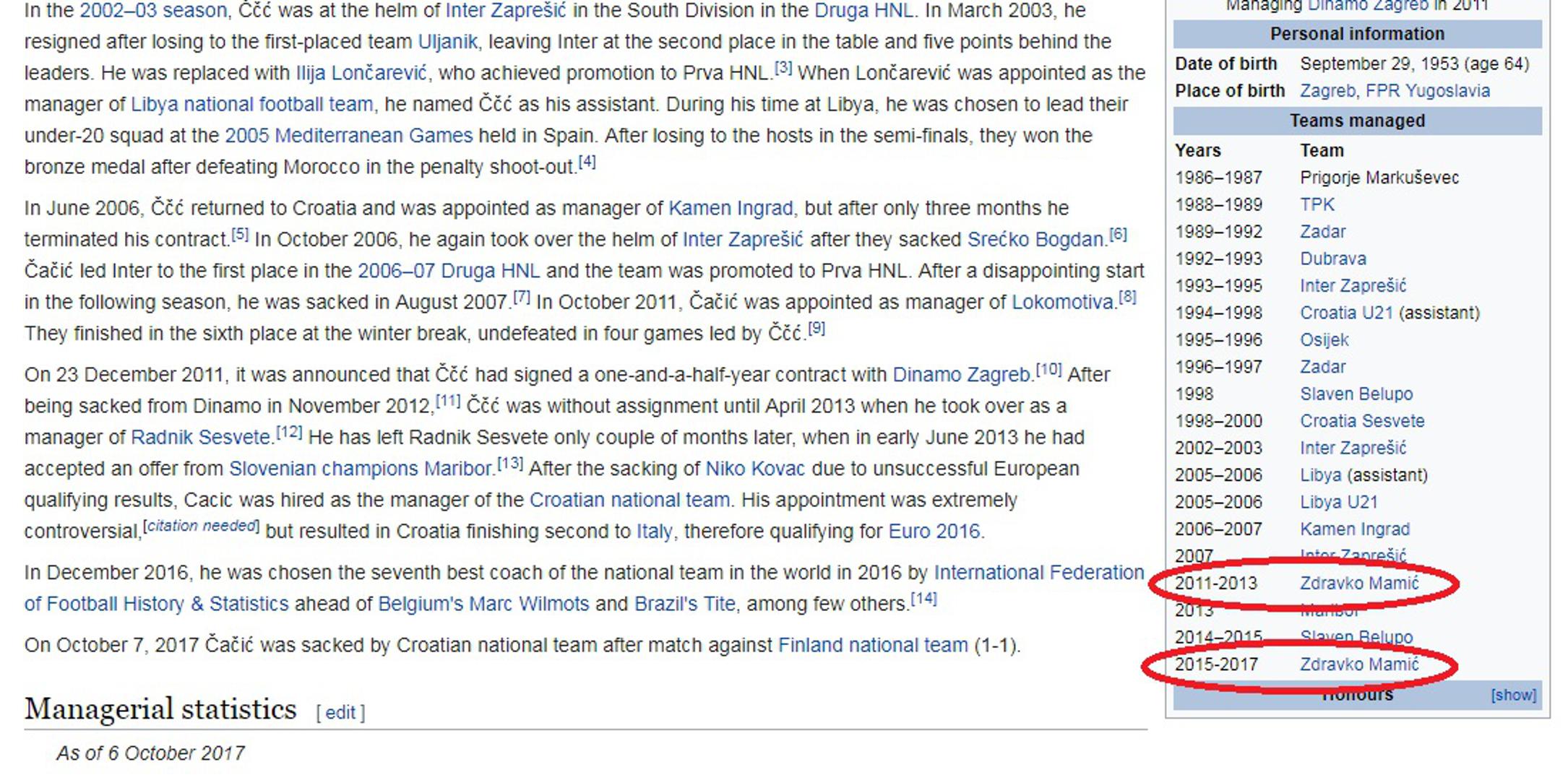 Ante Čačić je po Wikipediji posljednje dvije godine vodio - Zdravka Mamića