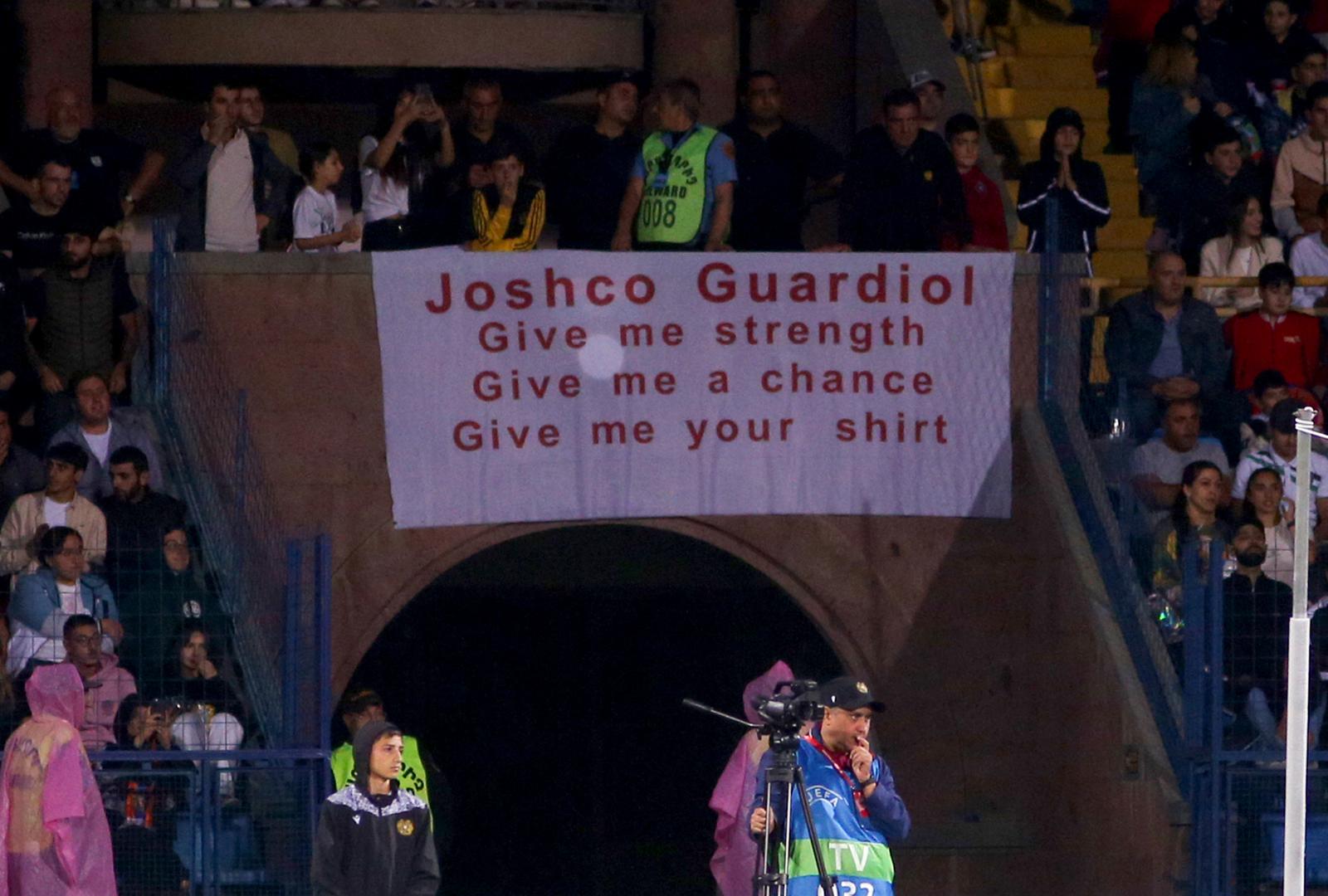 poslali su mu poruku s tribina, ali napravili su veliki gaf i napisali njegovo ime krivo. Umjesto Joško Gvardiol na transparentu je stajalo Joscho Guardiol nakon čega je pisalo: ''Daj mi tvoju snagu, daj mi šansu, daj mi dres." Ili su se zabunili ili su namjerno stvorili poveznicu s Pepom Guardiolom koji Joška trenira u Cityju.