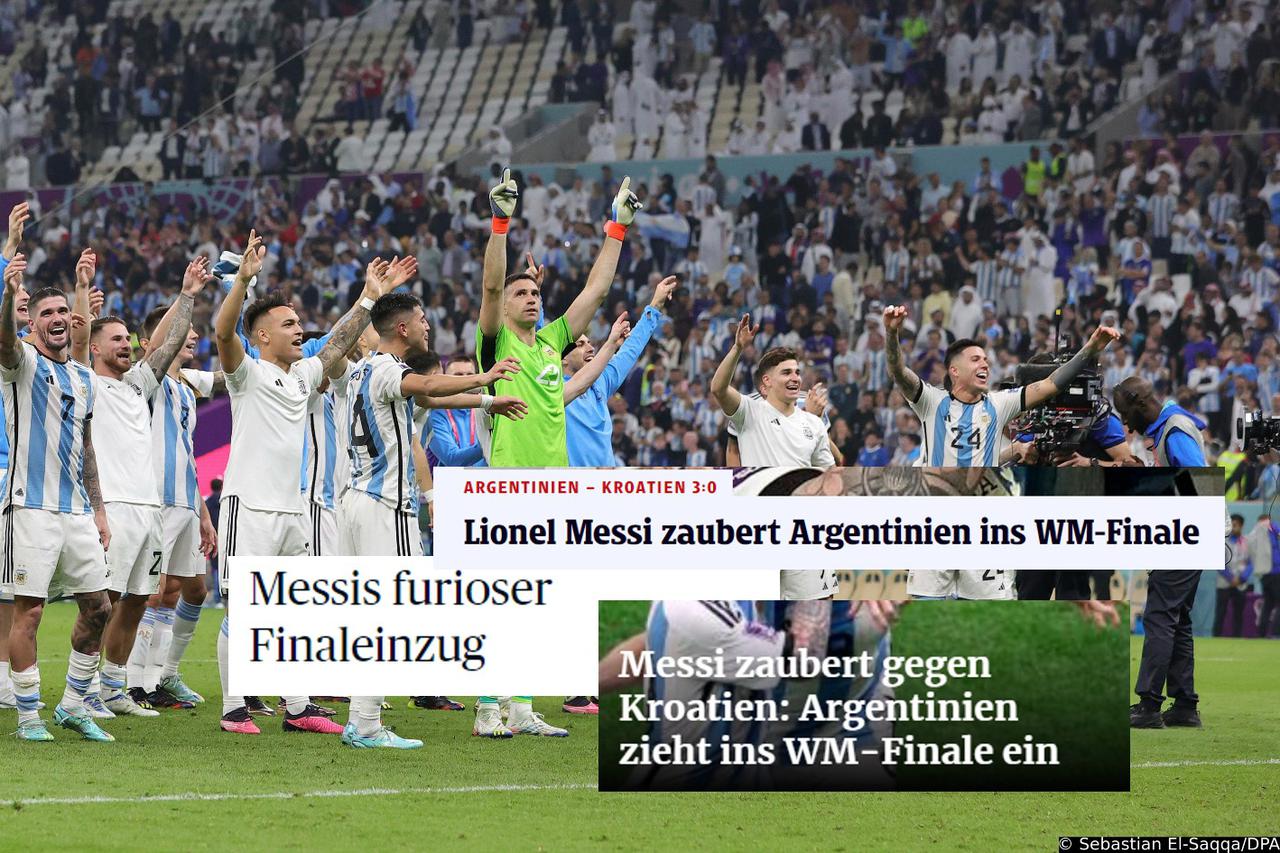 Austrijski mediju u izvještavanju nakon večerašnjeg poraza hrvatske nogometne reprezentacije s 0:3 od Argentine na svojim naslovima svi imaju ime Lioenela Messija, argentinske nogometne zvijezde, koja je zajedno s Juliom Alvarezom zapečatila daljnju sudbinu Hrvatske. Svima im je zajedničko to da pišu o “jasnoj” i “zasluženoj” pobjedi Argentinaca nad Hrvatima.