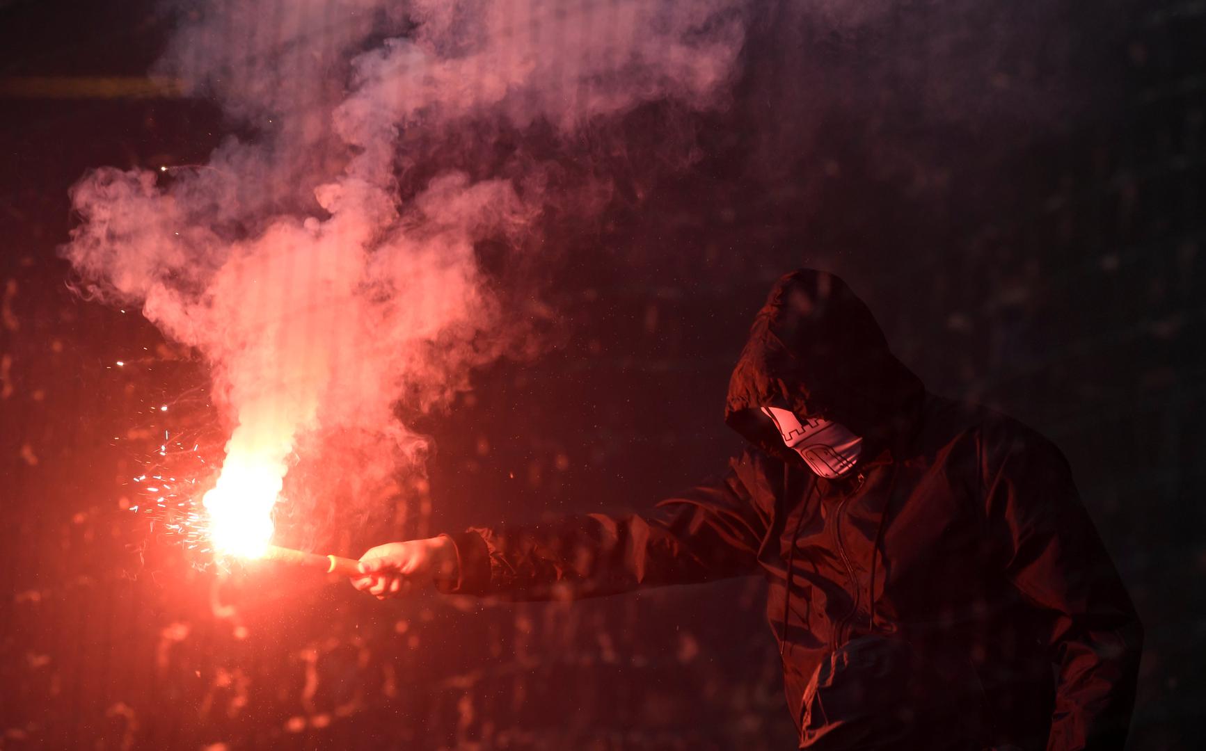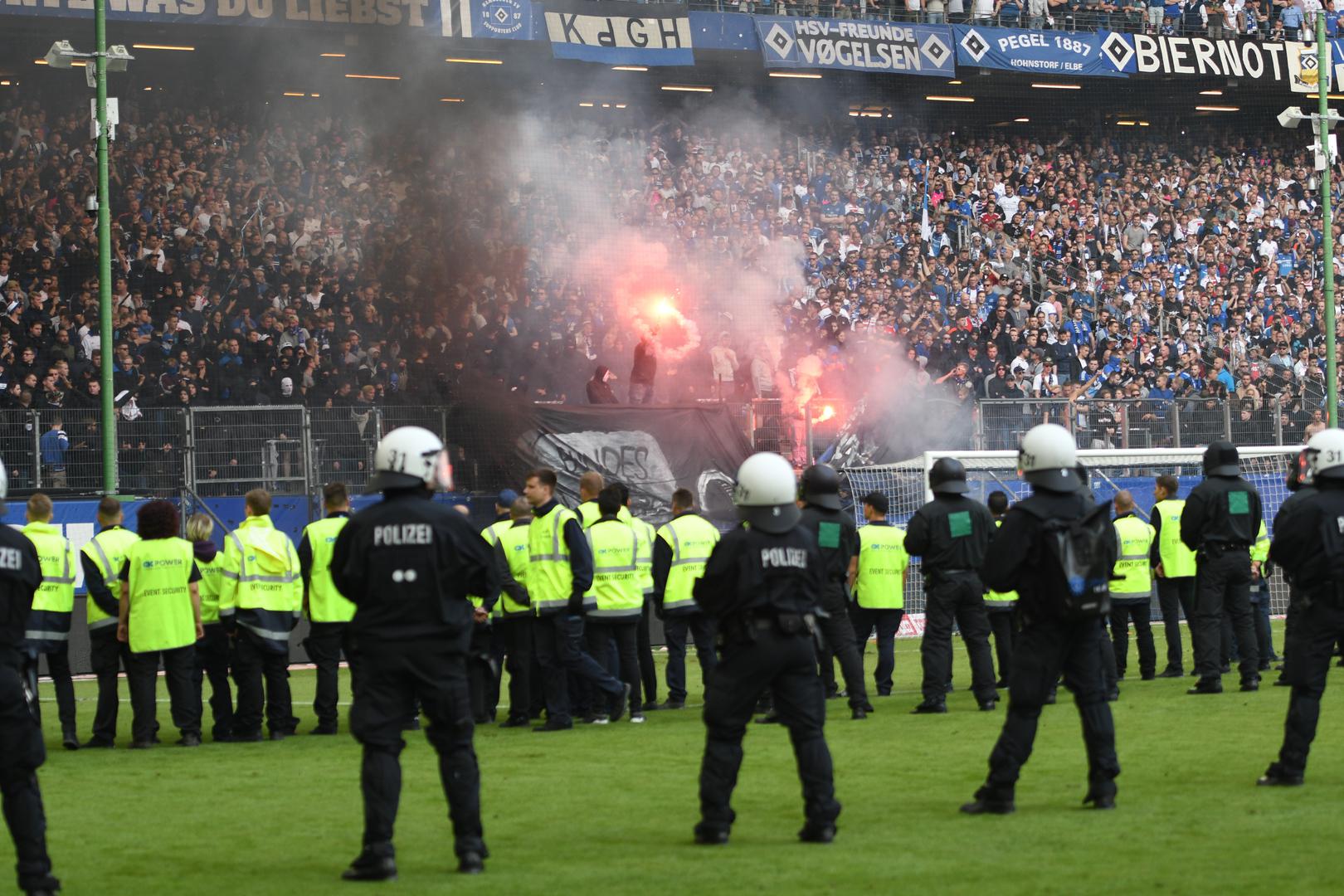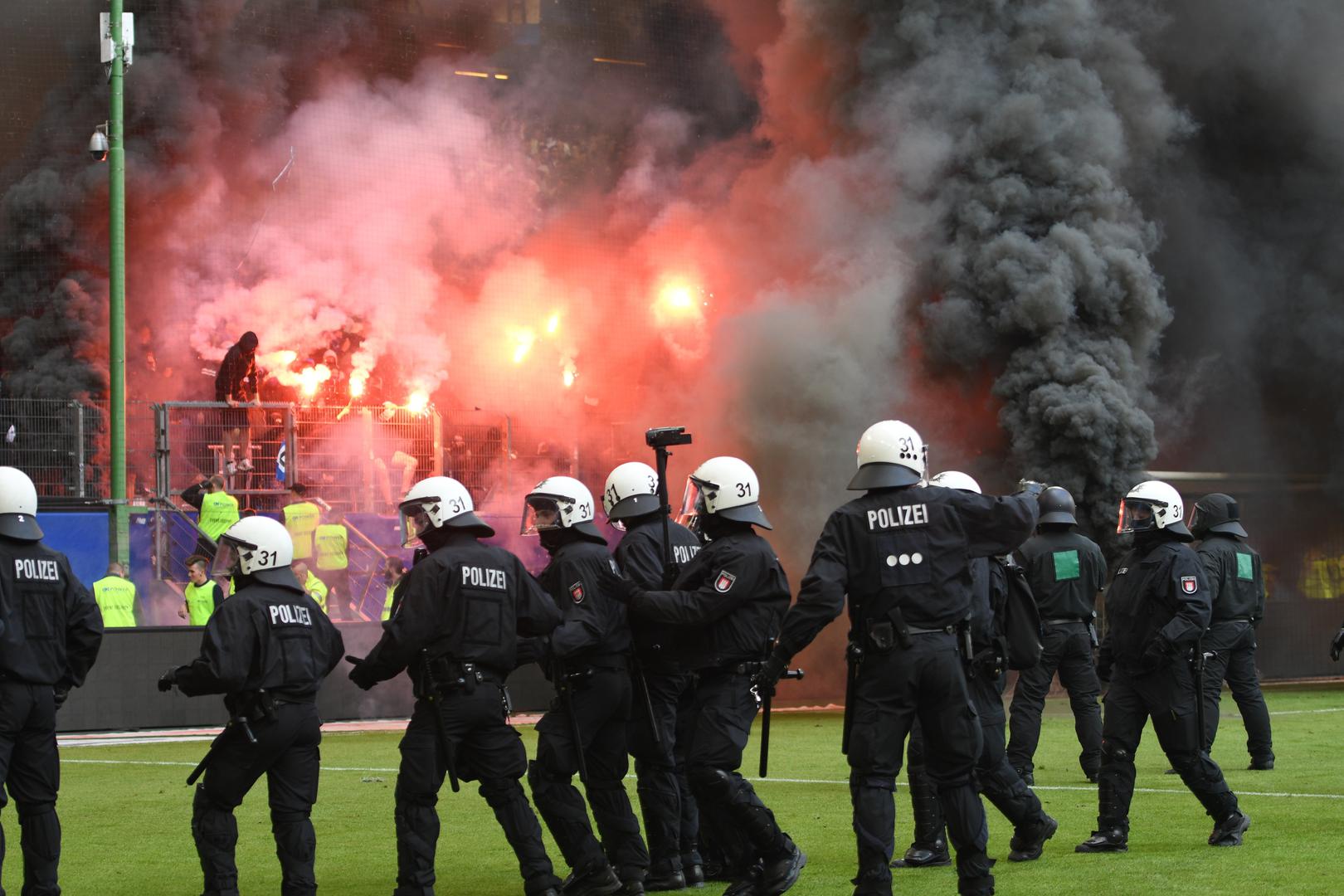 Naime, navijači se nisu mogli pomiriti s ispadanjem te su na teren počeli bacati baklje i dimne bombe.