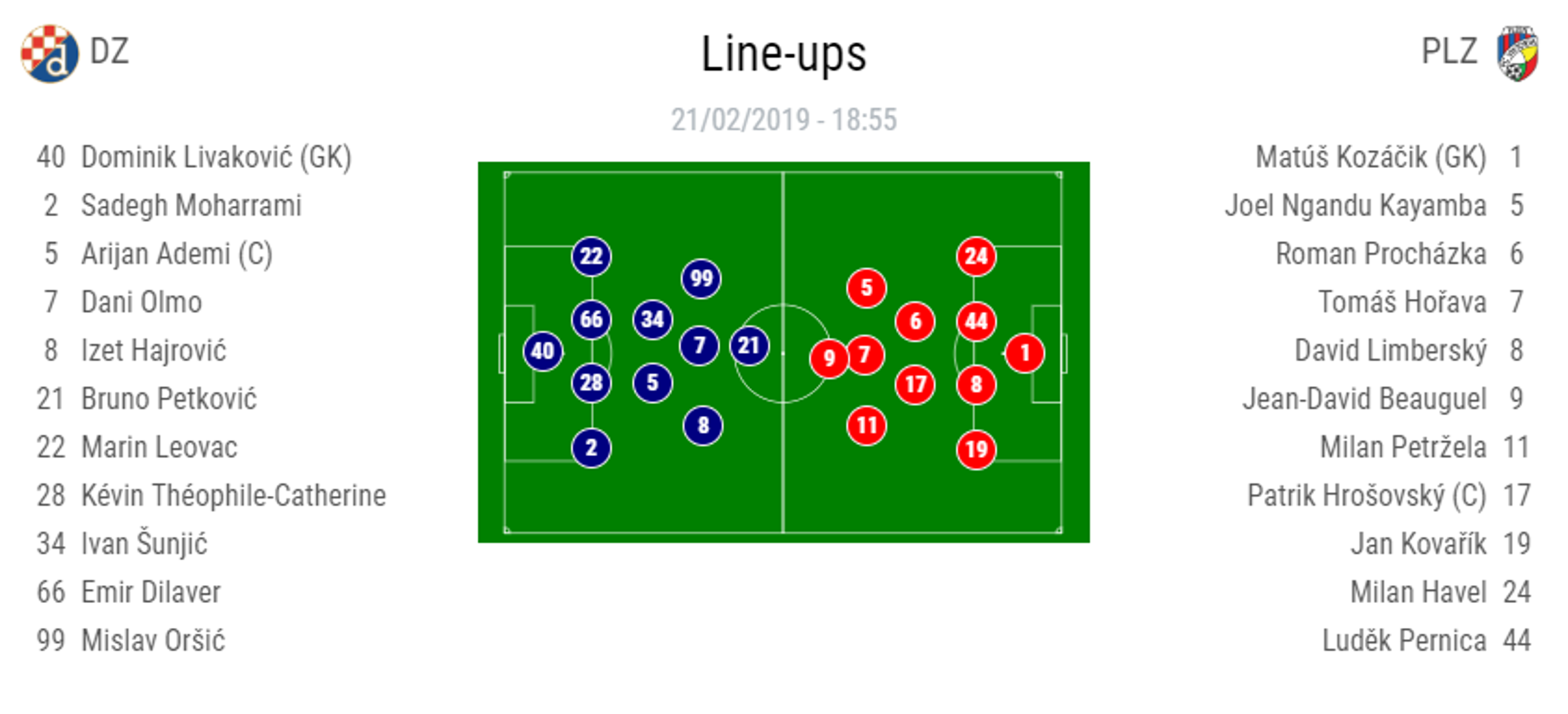 S druge strane Pavel Vrba morao je pronaći stopera, imao je samo jednoga, i to onog Pernicu koji je Dinamu u prvoj utakmici zabio dva gola i postao nenadani junak donijevši češkom klubu 2:1 pobjedu. Ostali su mu bili ozlijeđeni ili kartonirani, pa je na to poziciju postavio inače lijevog beka Limberskyja, a i Vrba je malo promiješao ‘karte’.