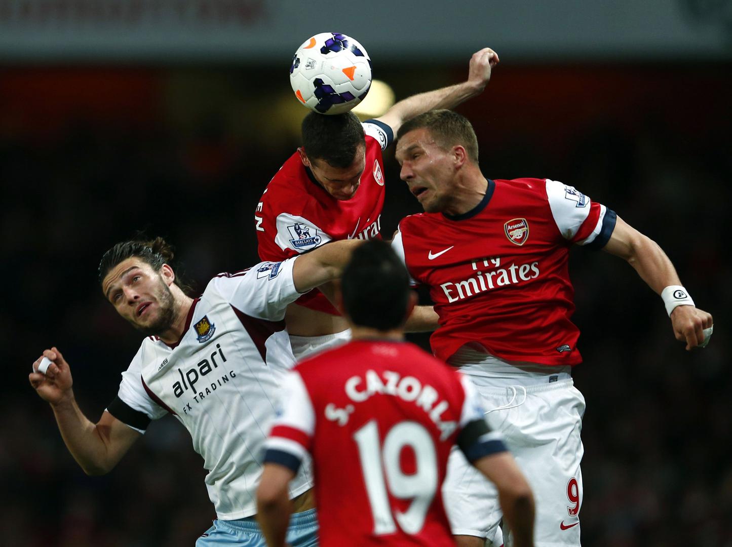 Arsenal je u zaostaloj utakmici Premiershipa sa 3:1 na Emiratesu pobijedio West Ham. Gosti su poveli u 40. minuti golom Jarvisa, međutim samo četiri minute kasnije 'topnici' su izjednačili preko Podolskog.