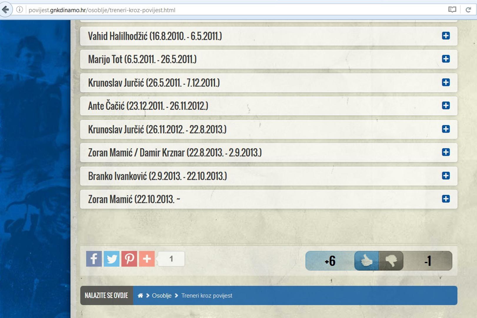 Ako je suditi prema službenoj stranici Dinama, Cico Kranjčar ljetos nije ni postao trener plavih! Naime, u rubrici Treneri kroz povijest posljednji trener koji je naveden je Zoran Mamić, uz kojeg piše 22. 10. 2013. – ?. Dakle, službena stranica još broji Zokijeve dane na klupi.