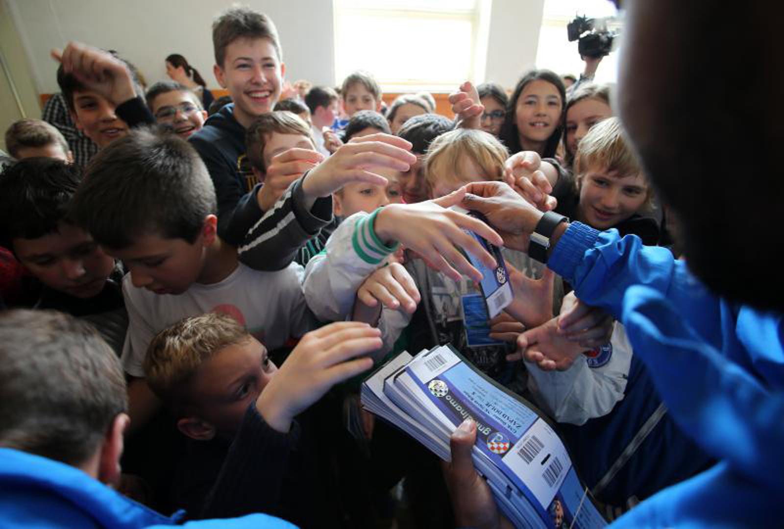 U sklopu projekta Football for Friendship mlađi pioniri Dinama i igrači prve momčadi Domagoj Antolić i El Arbi Hillel Soudani družili su se s učenicima OŠ Augusta Šenoe te su djeci podijelili narukvice prijateljstva i ulaznice za susret sa Slavenom Belupom.