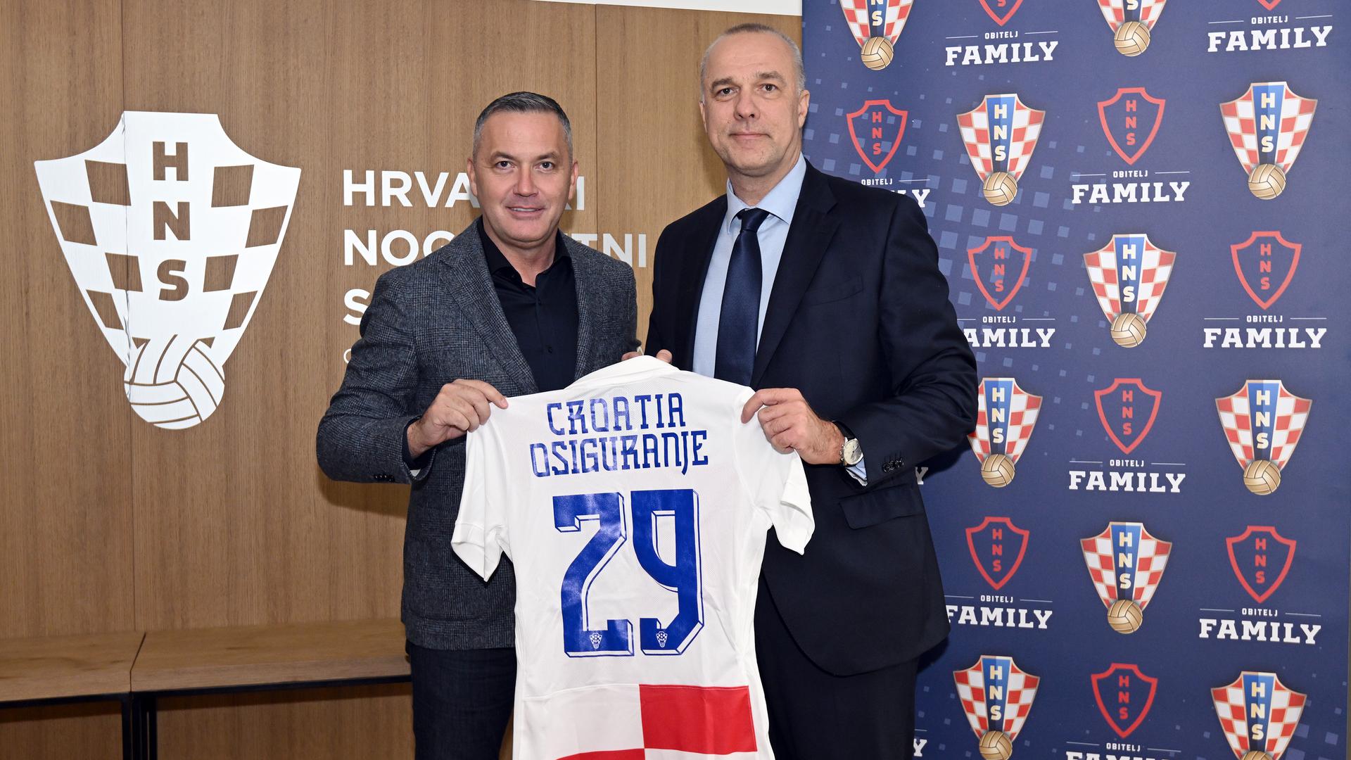 Novi višegodišnji sponzorski ugovor potpisali su predsjednik Hrvatskog nogometnog saveza, Marijan Kustić, i predsjednik Uprave Croatia osiguranja, Davor Tomašković. Nakon svečanog potpisivanja ugovora, Kustić je Tomaškoviću darovao personalizirani dres treće reprezentacije svijeta.
