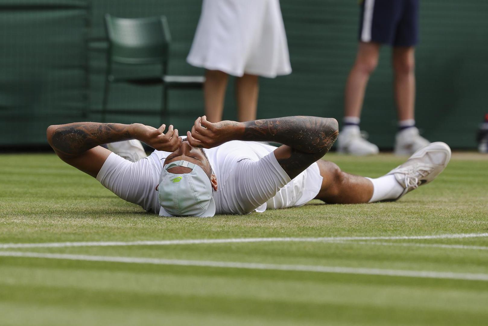 Wimbledon Day 10. Gentlemen’s Singles Quarter-Final Cristian Garin vs Nick Kyrgios. Nick Kyrgios wins in straight sets. Material must be credited "The Times/News Licensing" unless otherwise agreed. 100% surcharge if not credited. Online rights need to be cleared separately. Strictly one time use only subject to agreement with News Licensing Photo: Marc Aspland/The Times/NEWS SYNDICATION