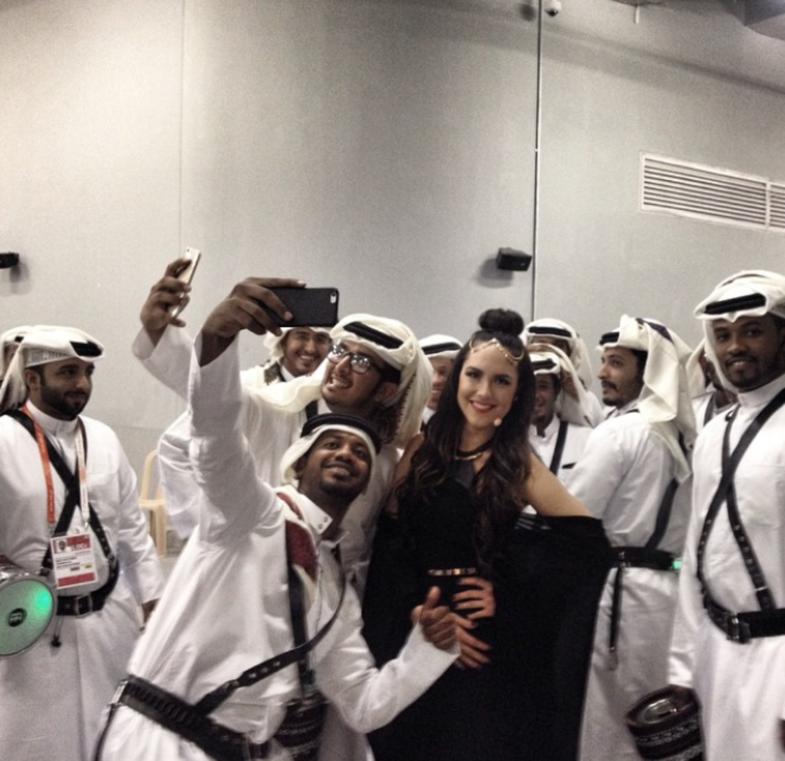 Inače, kažu da pravila za strance nisu toliko stroga što se tiče kretanja po gradu i oblačenja, ali mi smo, s obzirom na projekt, htjeli poštovati sva pravila. Desetak minuta samog nastupa bila sam potpuno mirna jer na neki način odgovornost svih dijelila nas se na 24 dijela, što je u svakom slučaju davalo osjećaj sigurnosti, ali ne zadugo. Ne možeš pobjeći od adrenalina kada počne svirati svjetska himna. Na putu do pozornice prošla sam pokraj tribine na kojoj su sjedili naši reprezentativci i odjednom sam iza sebe čula gomilu glasova koji viču "Lana, Lana".