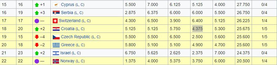 Hrvatska u ovome trenutku ima koeficijent 25.675, ali preuzimanje 15. mjesta od Ciprana najvjerojatnije će ostati neostvarena želja. Ciprani trenutačno imaju koeficijent 27.750, odnosno poziciju koja nosi dva predstavnika u Ligi prvaka, jednog u Europskoj ligi i dva u Konferencijskoj ligi.