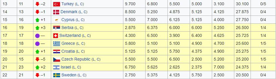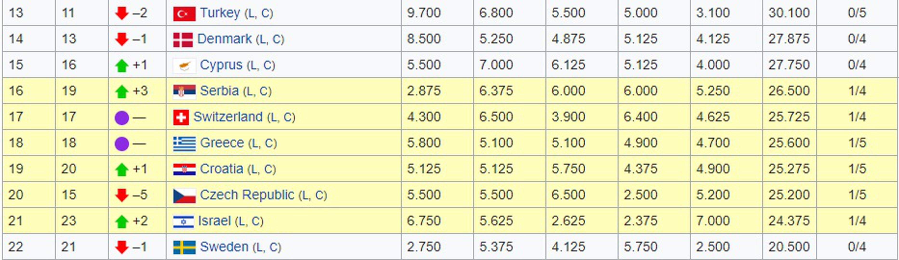 Te tri države nalaze se ispred nas, a blizu su nam još jedino Česi na dvadesetoj poziciji s koeficijentom 25.200 i jednim predstavnikom.
