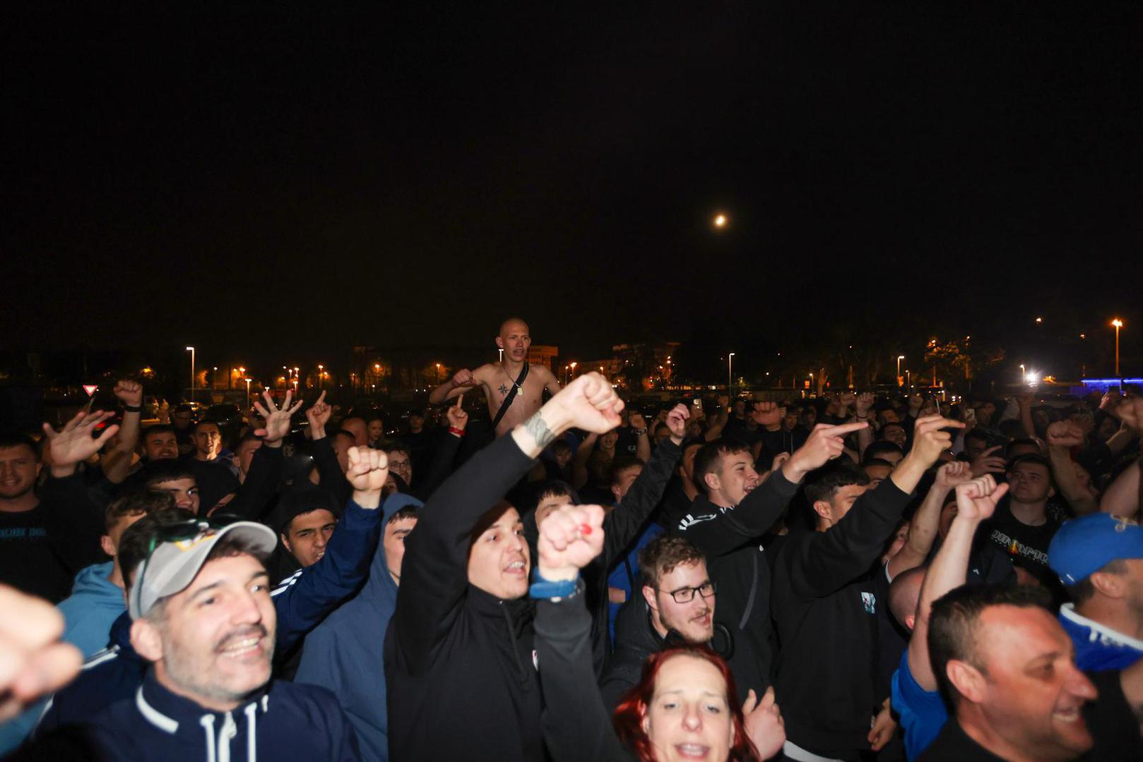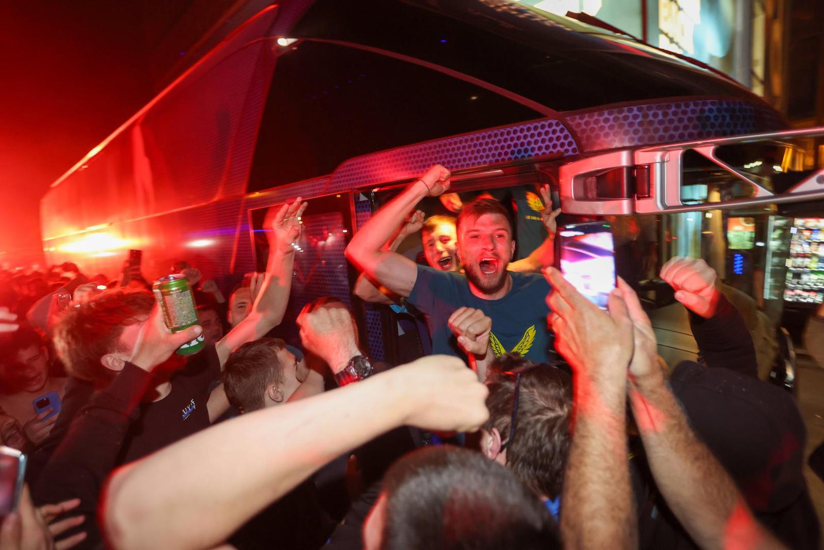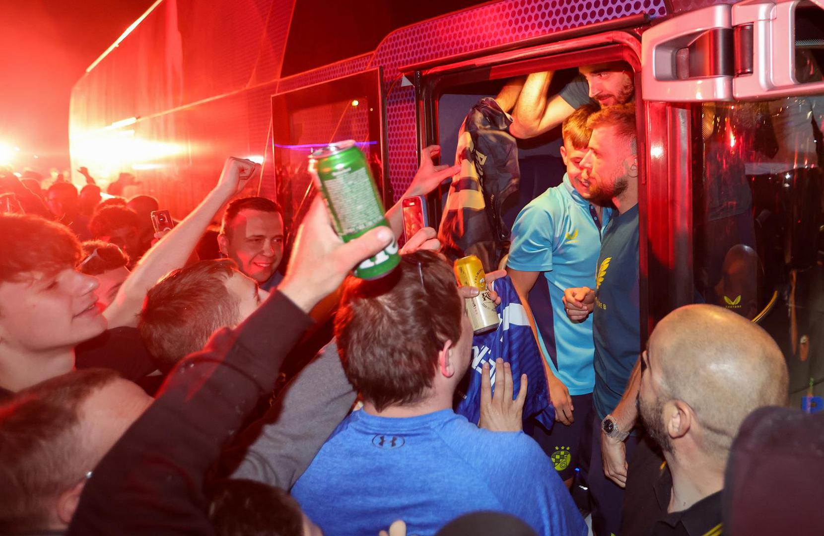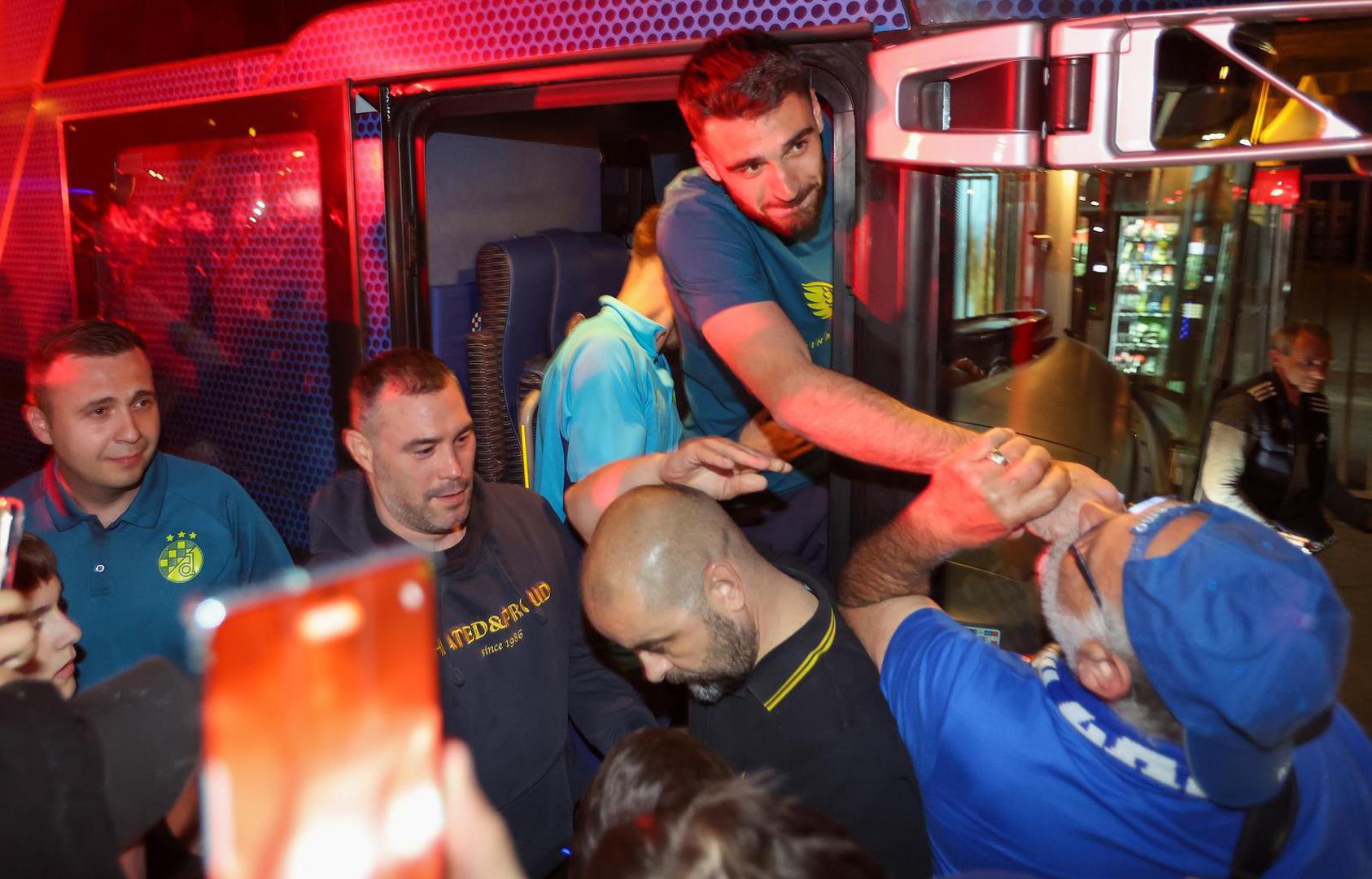 Autobus s igračima i stručnim stožerom Dinama vratio se kasno noćas na Maksimir, a tamo ga je dočekalo nekoliko stotina oduševljenih Bad blue boysa. Oni su uz pjesmu i baklje pozdravili svoje junake iz Splita.