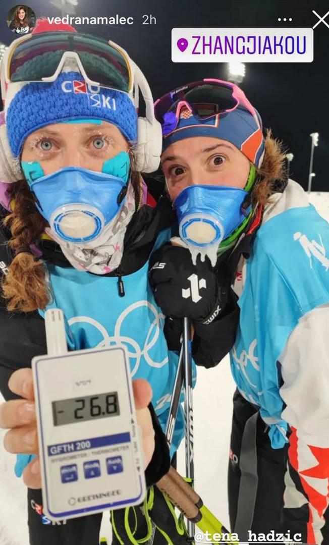 Nalaze se u olimpijskom selu Zhangjiakou, gdje treniraju, a u kakvim uvjetima... Na gotovo 30 ispod nule, što je tolika hladnoća da su se Malec potpuno smrznule trepavice.