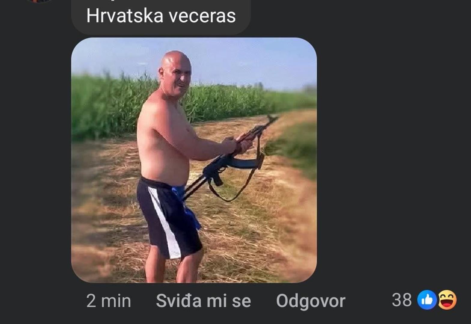 Međutim, brojni su se i našalili na račun bivšeg ministra poljoprivrede Josipa Dabre, jer je danas prije utakmice u medijima objavljen screenshot iz nove snimke na kojoj u rukama drži oružje. Ovoga puta snimljen je bio s kalašnjikovom u rukama, koji je inače zabranjen u Hrvatskoj.