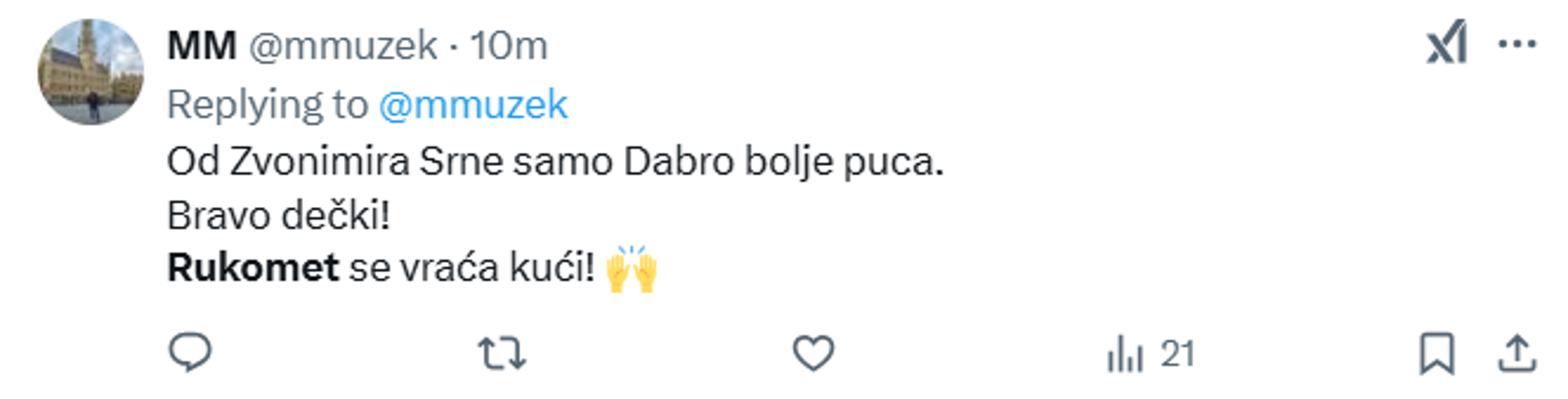Brojne su reakcije uslijedile tijekom, ali i nakon nevjerojatne utakmice na kojoj su hrvatski rukometni reprezentativci slavili s tri gola razlike nad Francuzima i tako se plasirali u samo finale Svjetskog prvenstva nakon 16 godina. Ovo je bila ujedno i posljednja utakmica Domagoja Duvnjaka na domaćem terenu, a finalom će se završiti svoju dugogodišnju i legendarnu rukometnu karijeru.