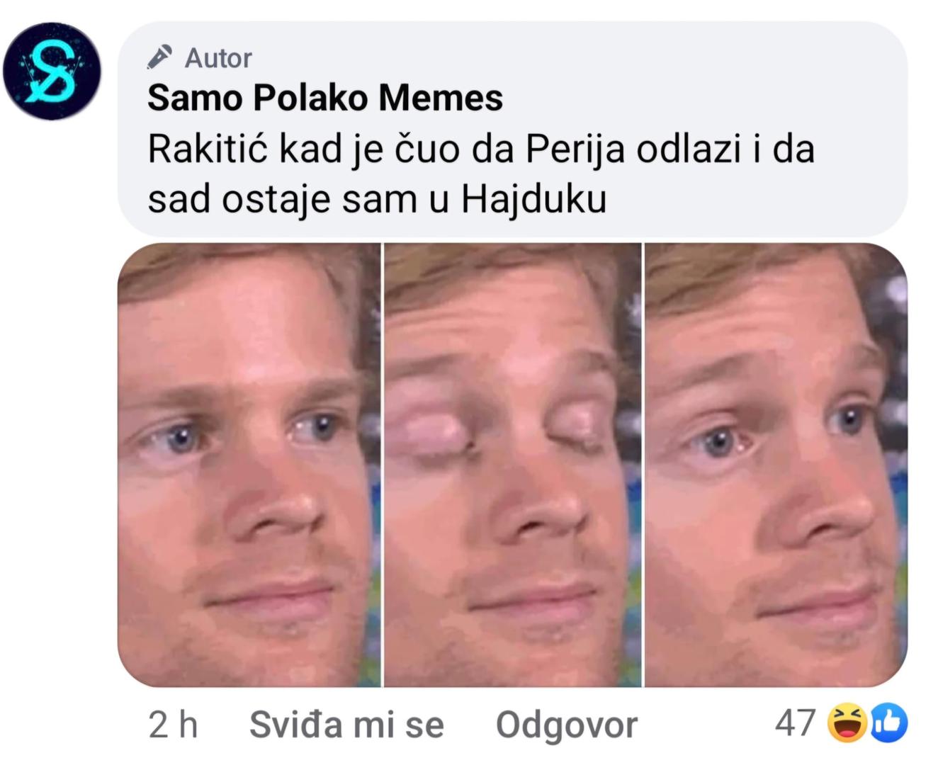 O njegovu ekspresnom odlasku iz Hajduka ne prestaje se pisati na društvenim mrežama, a korisnici X-a i Facebooka odlučili su se s cijelom situacijom i našaliti. U našoj galeriji pogledajte najbolje memeove o toj temi.