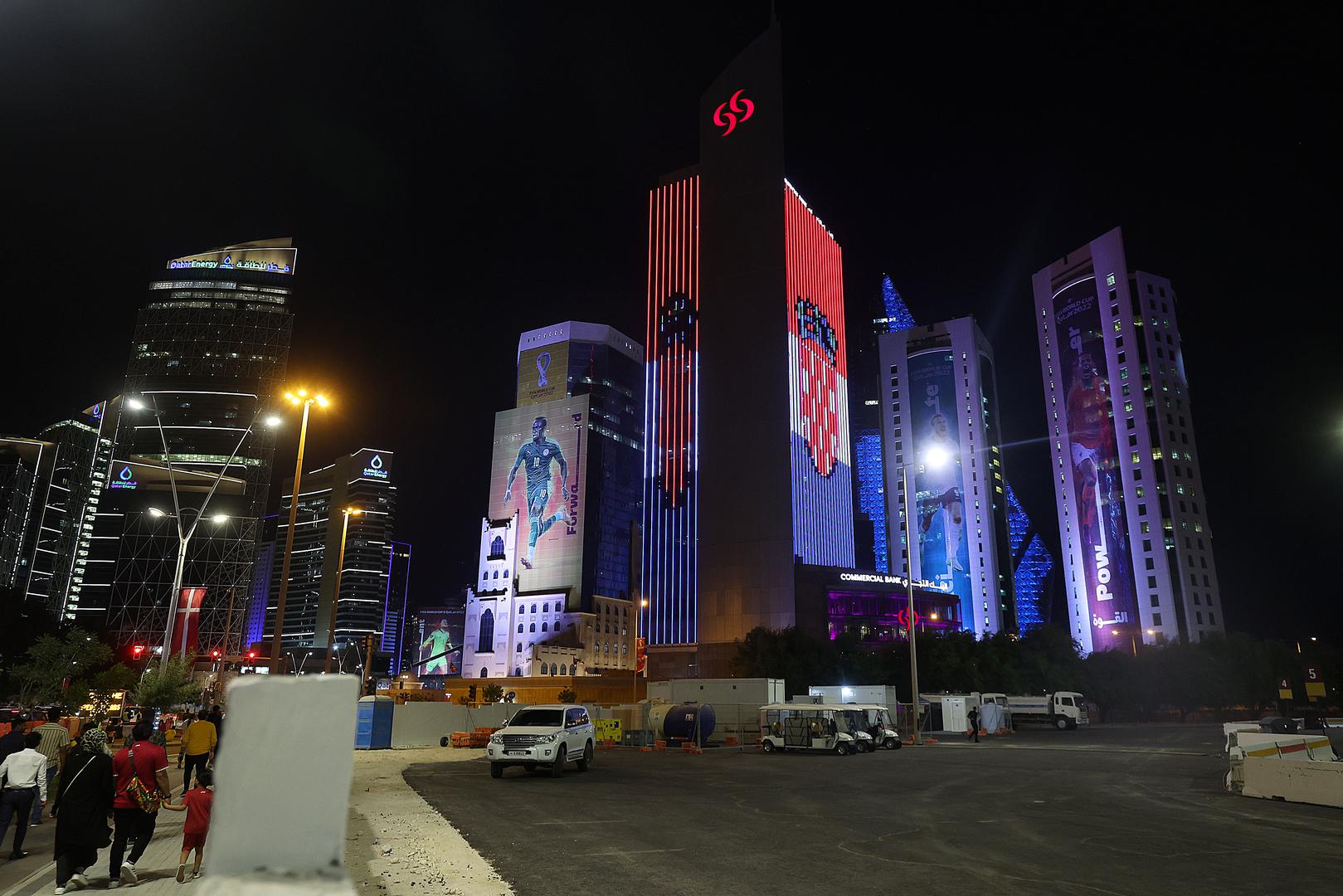 20.11.2022., West Bay, Doha, Katar - Neboder na West Bayu u bojama hrvatske zastave. Photo: Goran Stanzl/PIXSELL