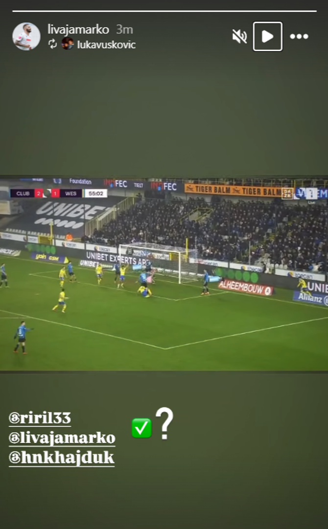 GALERIJA Kruže fotke novog stadiona Hajduka, navijači zgroženi: 'Ovo je kao torta na dječjem rođendanu'Time je hrvatski U21 reprezentativac postigao pogodak drugo kolo u nizu, a ujedno je to bio već šesti njegov ligaški pogodak ove sezone. Toliko je zabio i njegov suigrač Matija Frigan koji nije konkurirao za ovaj dvoboj. Club Brugge je ponovno poveo golom Siqueta u 64. minuti, ali su gosti imali snage za novi povratak te je za 3-3 zabio Devine u 71. minuti. Taj je rezultat stajao sve do 95. minute kada Siquet postigao novi gol za Club Brugge kojem je osigurao 4-3 i tri boda. Club Brugge je drugi na ljestvici s 41 bodom, dok 42 ima vodeći Genk. Westerlo je 11. na ljestvici i ima 23 boda.