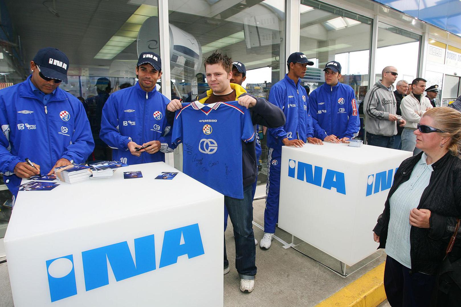 Tadašnji igrači zagrebačkog Dinama su prije 17 godina na bezinskoj pumpi nacionalne naftne kompanije kod Spanskog točili gorivo automobilima. U promotivnoj akciji Dinama sudjelovali su sadašnji hrvatski kapetan Luka Modrić, Mathias Chago, Eduardo da Silva, Nikola Pokrivač, Etto...