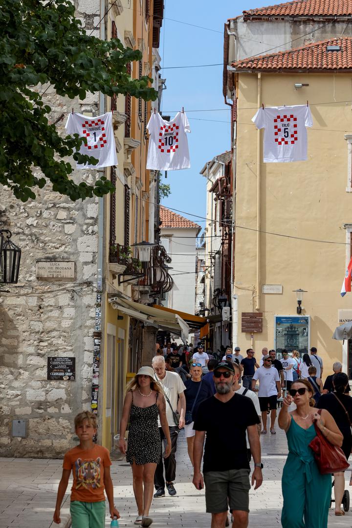 Uoči večerašnje utakmice Eura između Hrvatske i Italije na ulazu u grad Zadar, iznad Barakovićeve ulice, izvješene su majice s brojevima i imenima nekoliko reprezentativaca, točnije Luke Modrića, Dominika Livakovića, Martina Erlića i Joška Guardiola.