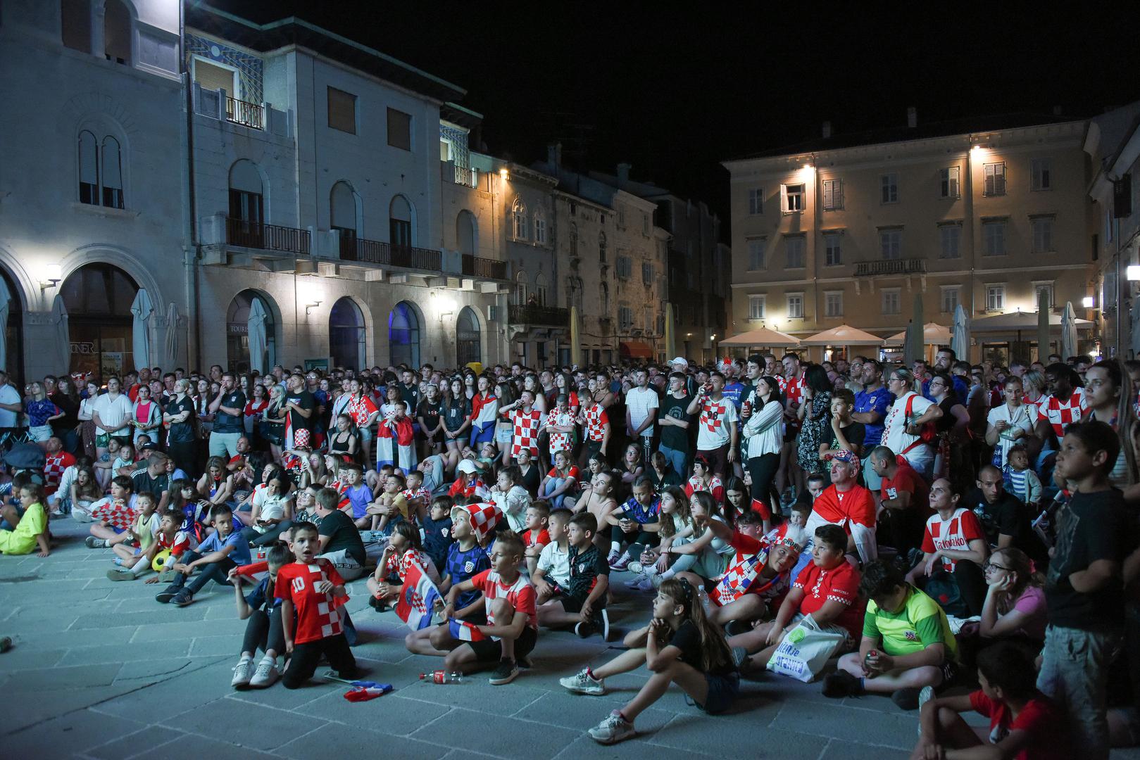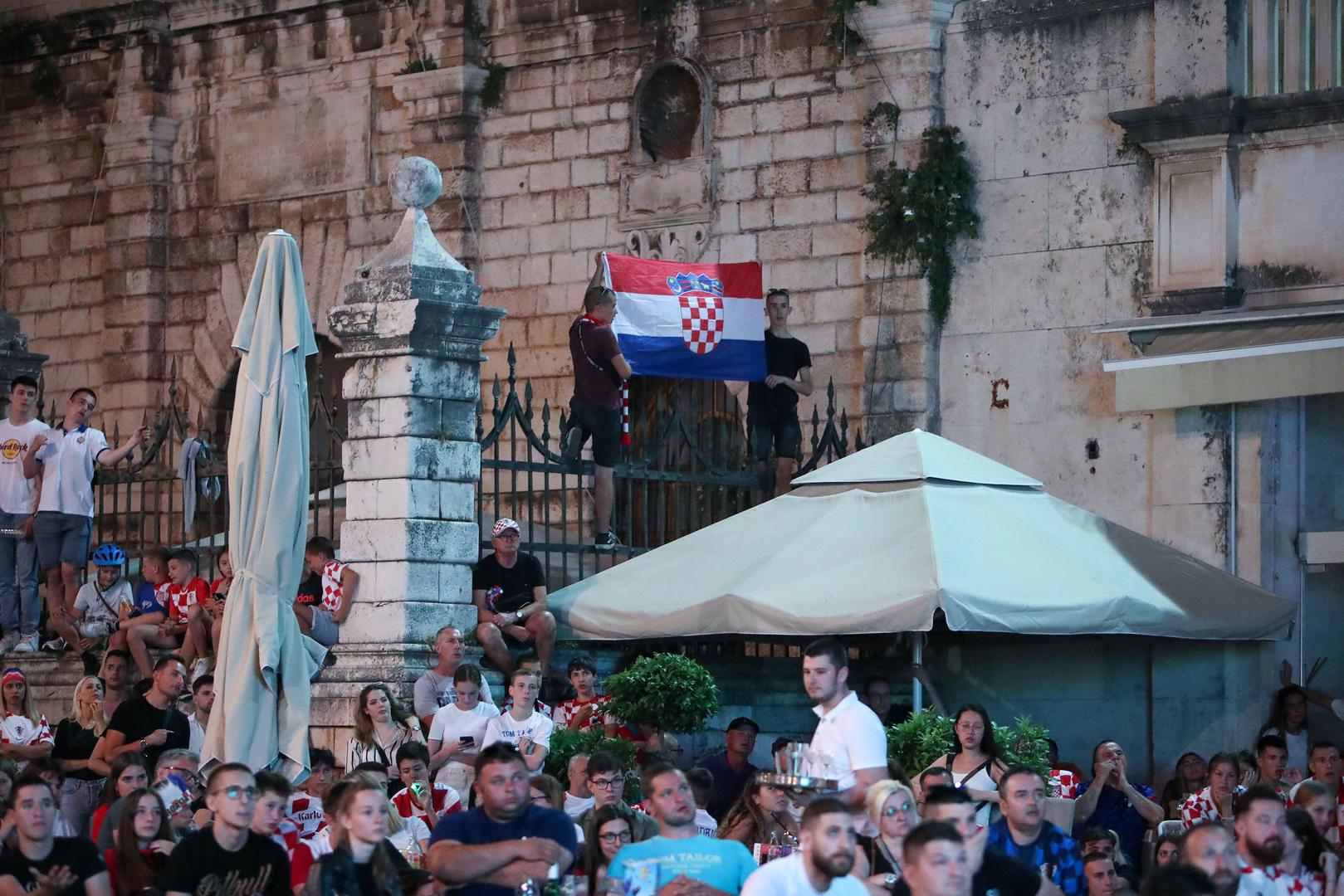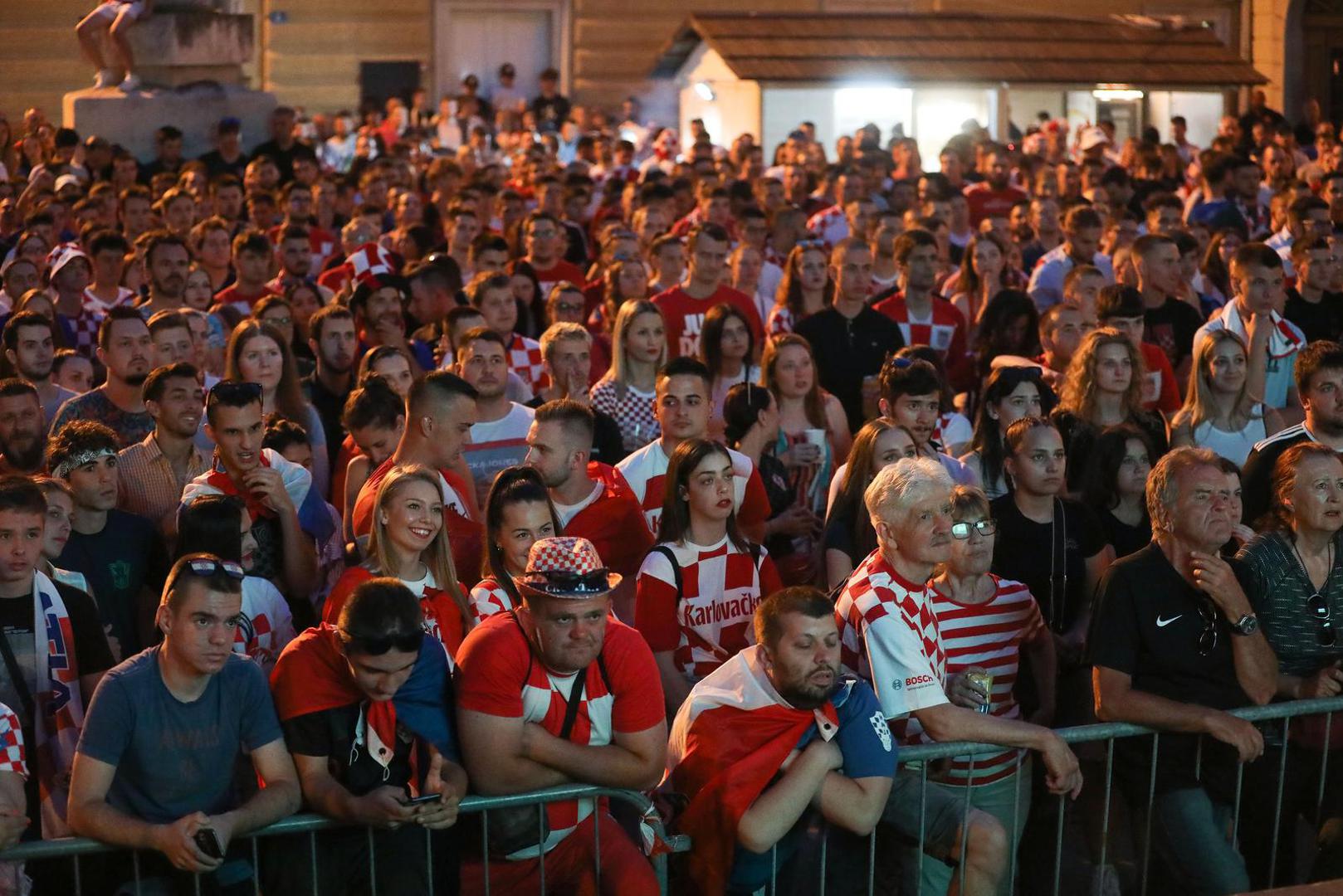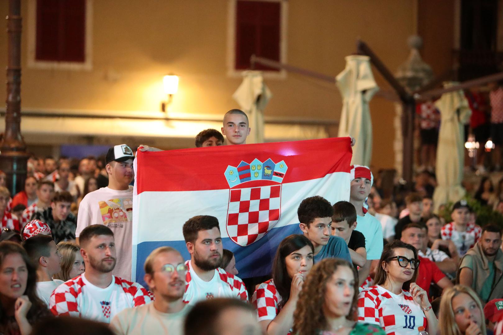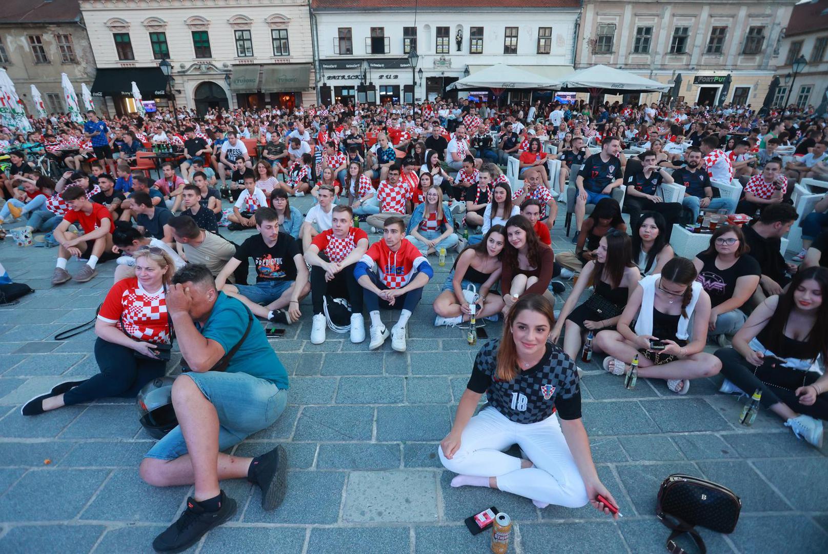 Na trgovima brojnih hrvatskih gradova večeras su se okupili navijači kako bi zajedno uživali u utakmici Hrvatska - Španjolska