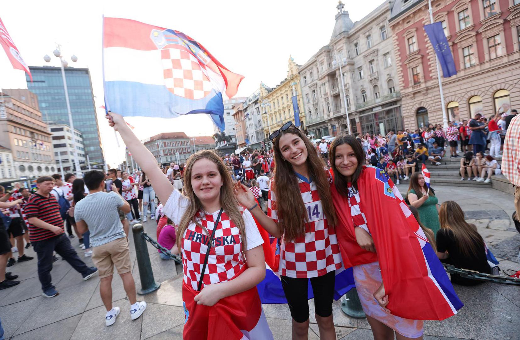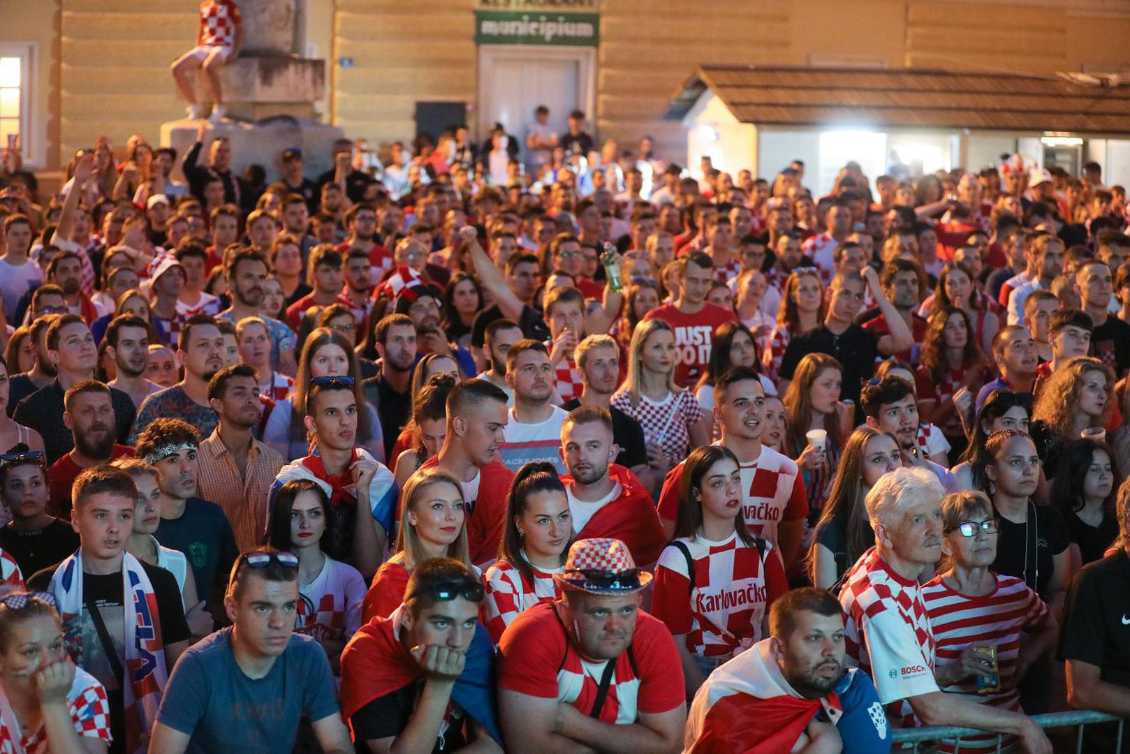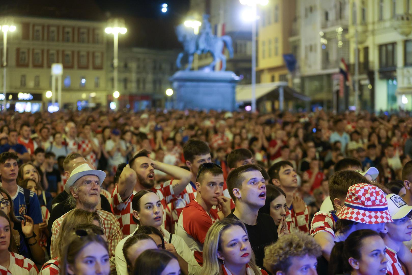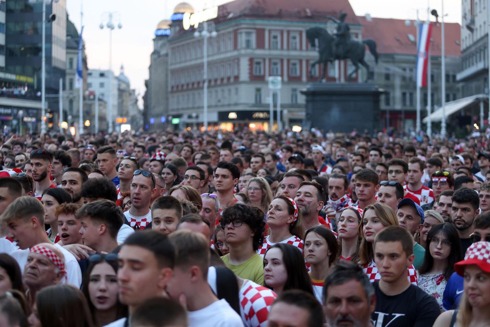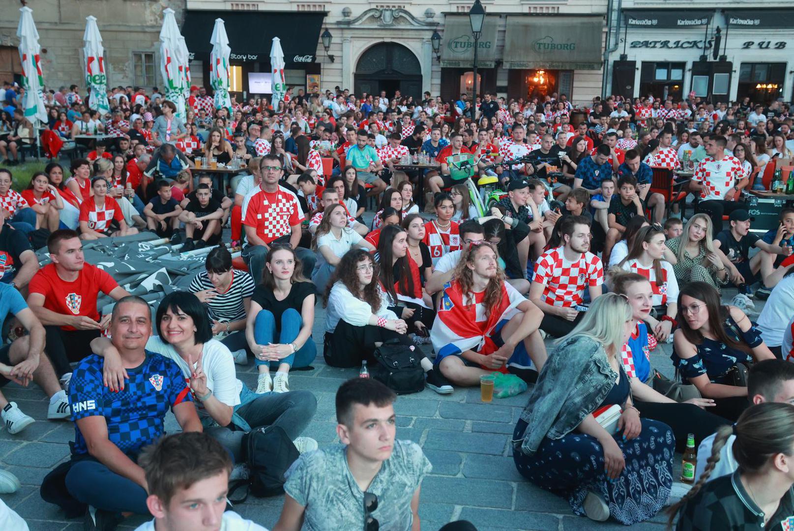 Na trgovima brojnih hrvatskih gradova večeras su se okupili navijači kako bi zajedno uživali u utakmici Hrvatska - Španjolska