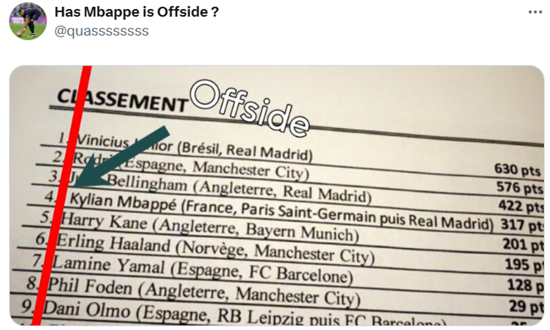 Najviše je memeova napravljeno na račun brazilskog krila u dresu Real Madrida Viniciusa Juniora, za kojega se očekivalo da će ponijeti nagradu, no ona je ipak otišla u ruke Rodrija, veznog igrača španjolske reprezentacije i Manchester Cityja.