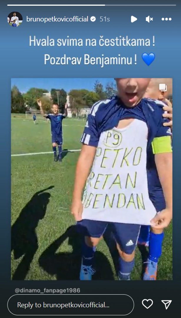 Petković je vidio fotografiju podijelio na vlastitom profilu uz zahvale navijačima. "Hvala svima na čestitkama! Pozdrav Benjaminu!" napisao je uz fotografiju dječaka.