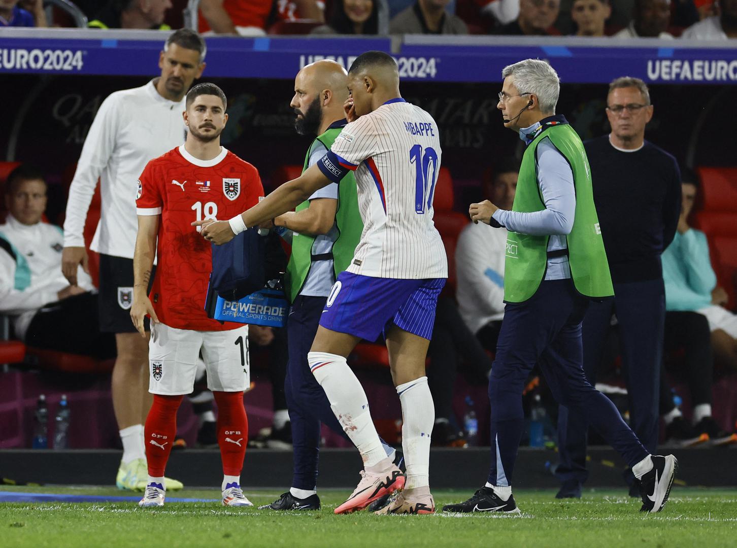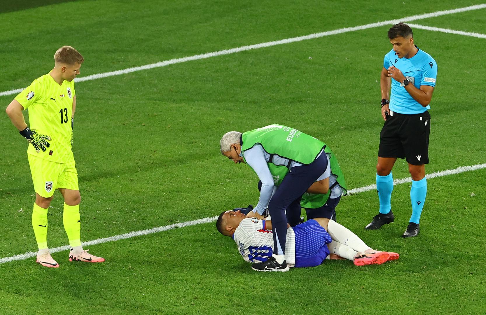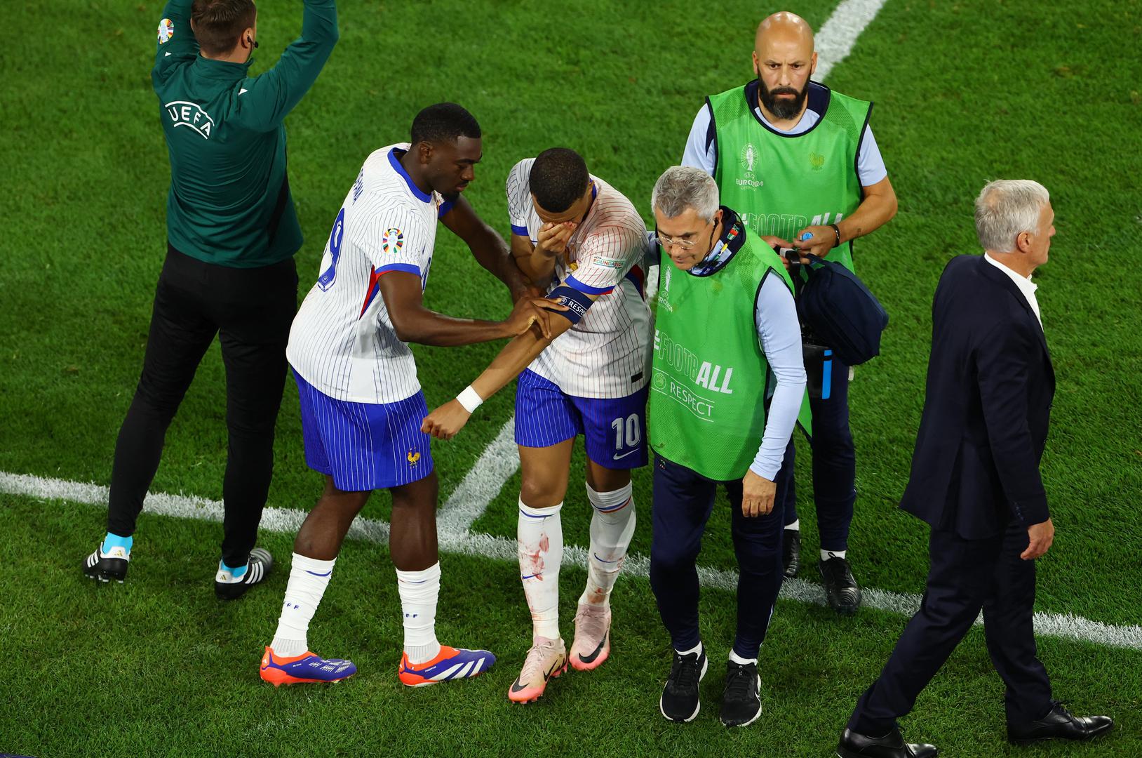 Prema prvim informacijama, Mbappe je nos čak i slomio, no za sada nije poznato kada će se vratiti na teren na ovom Europskom prvenstvu.