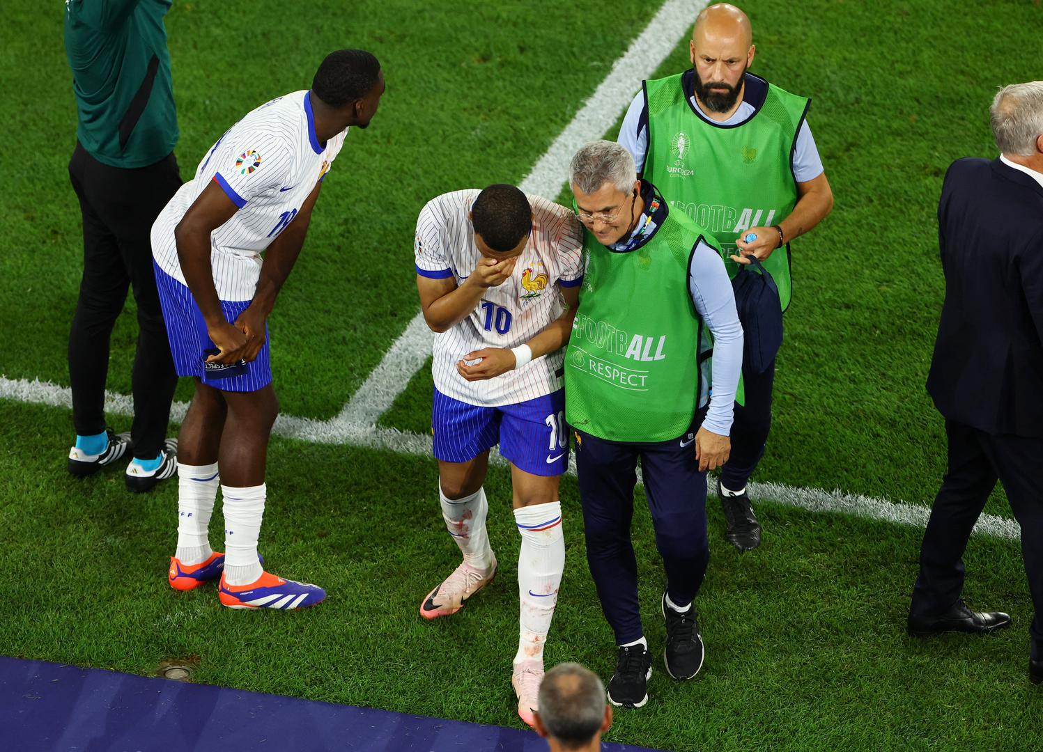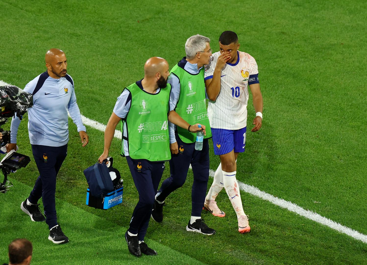 Naime, najvažniji igrač francuske reprezentacije morao je izići iz igre zbog ozljede nosa, koja je uslijedila nakon što se glavom zabio u rame Kevina Dansa.