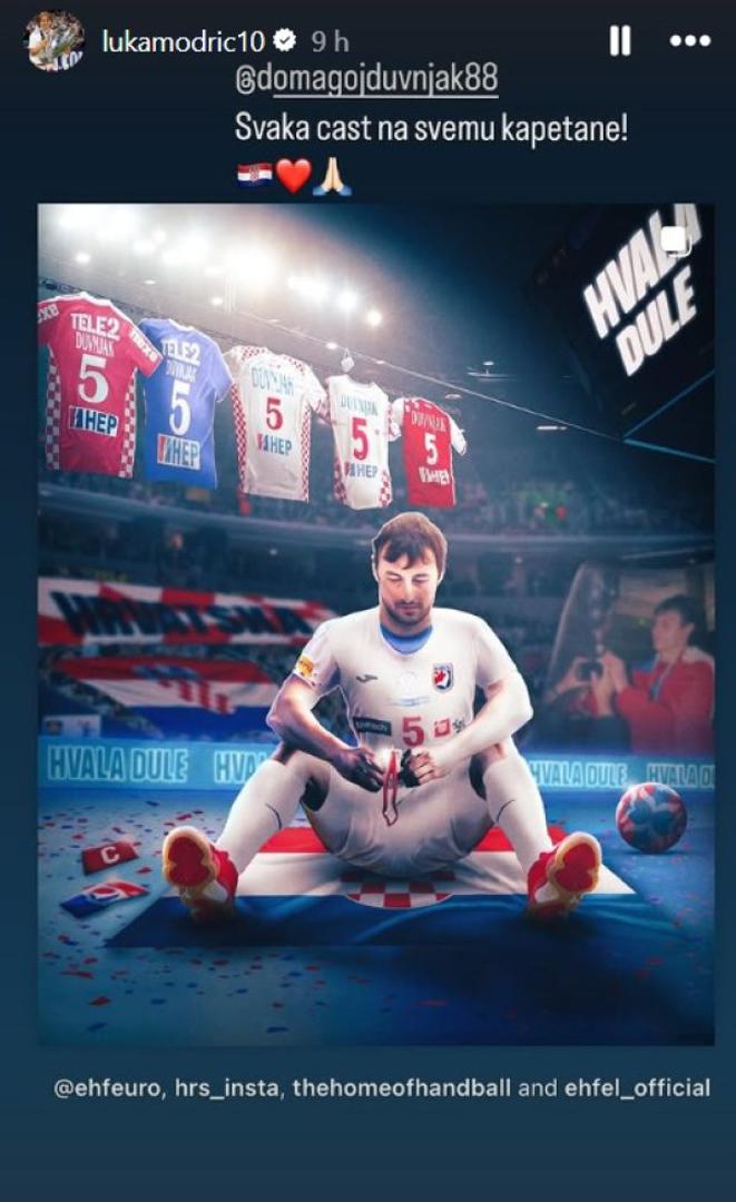 Modrić je na svom Instagram profilu objavio Duvnjakovu fotografiju s EHF-a i uz nju napisao kratku poruku: ‘Svaka čast na svemu, kapetane!’