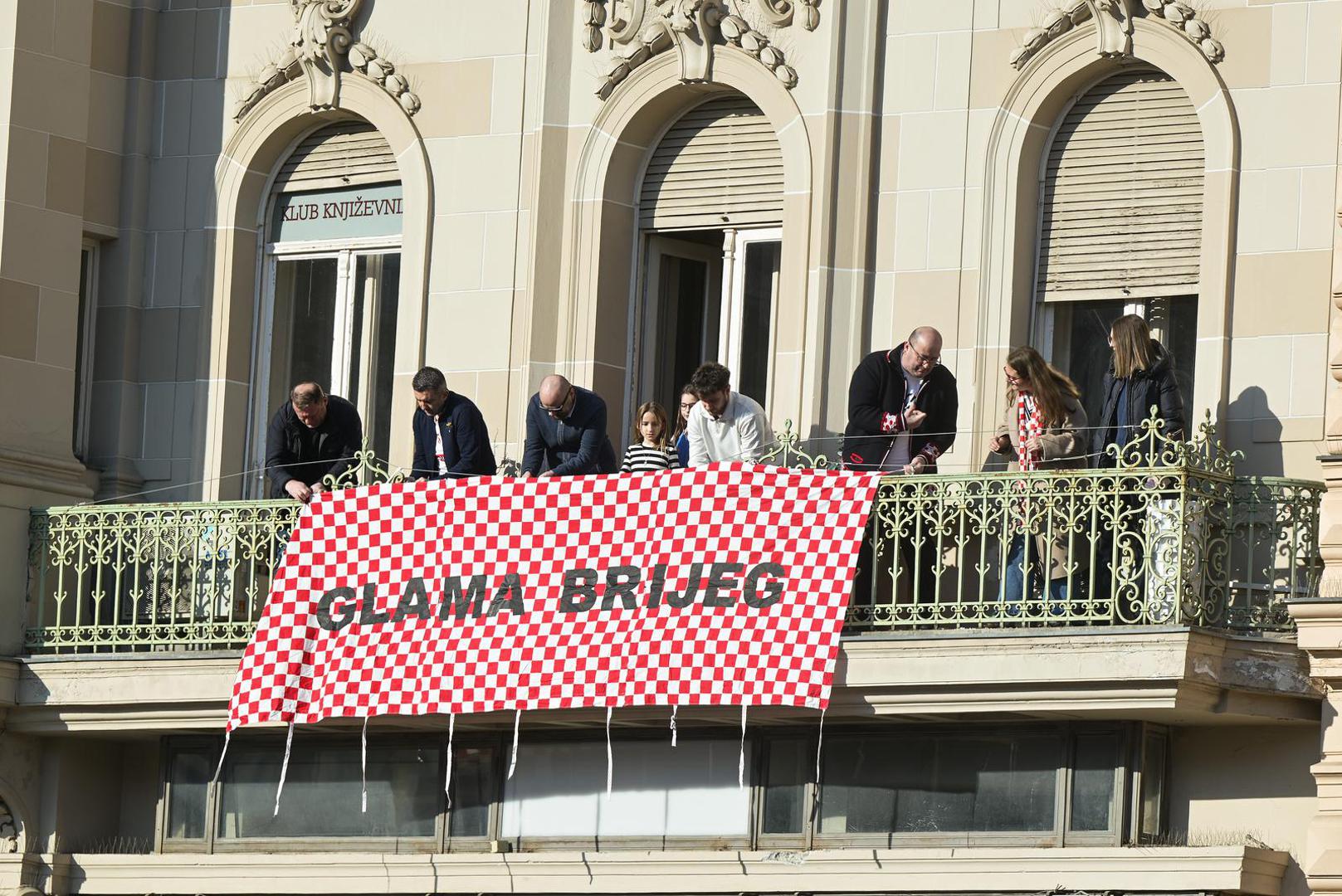 Trg bana Jelačića već je krcat navijačima, previđa se da ih ima preko 90 tisuća. Mnogi su doček odlučili pratiti s prozora i balkona okolnih zgrada, odakle se pruža sjajan pogled na slavlje. Terase kafića s pogledom na Trg također su popunjene.