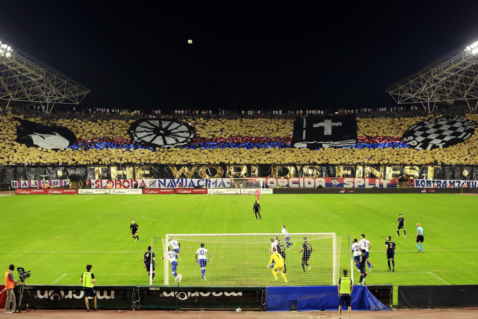 Grčki klubovi naviknuti su na žestoko navijanje s tribina, a hrvatski navijački pokazali su da ga niti ovdje ne nedostaje. PAOK je na Poljudu dočekala velika koreografija.