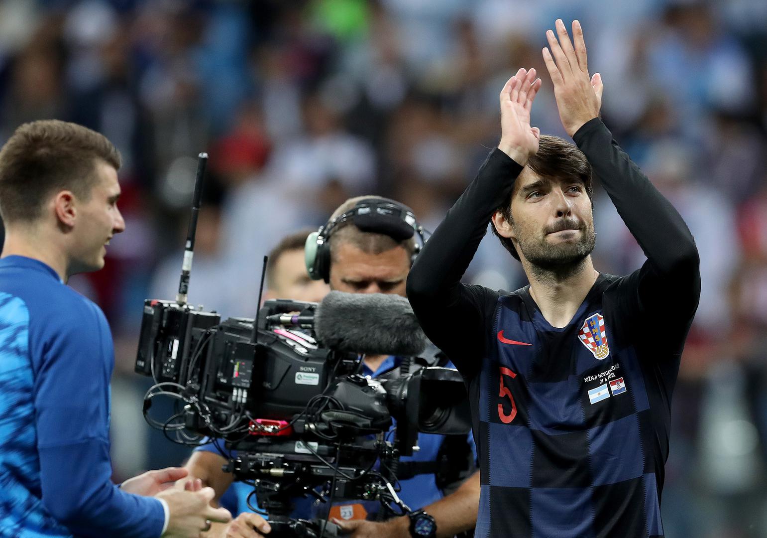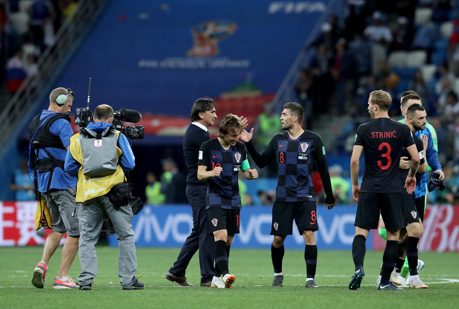 U polufinalnoj utakmici Hrvatska je pobijedila Englesku; nakon produžetka postigla je rezultat 2:1. Hrvatska je do kraja prvog poluvremena gubila 0:1, no u 68. minuti Perišić je zabio gol. Mandžukić je potom dao gol u produžetku za veliku pobjedu vatrenih.