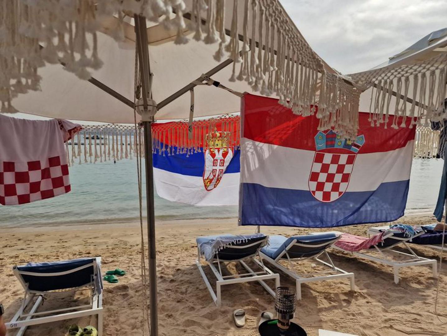 - Orlovi predvođeni Draganom Stojkovićem Piksijem ovog petka u 20 sati sastaju se sa Švicarskom, a Hrvatska u četvrtak u 16 sati sa Belgijom. Da nema razloga za bilo kakve tenzije, te da je prijateljstvo lišeno bilo kakvih nesuglasica, pokazali su u Dohi navijači dviju reprezentacija koji su se prije odlučujućih dvoboja sreli i družili na plaži. Uživanje su pratile zastave dviju selekcija iznad njihovih glava, a prostor u kojem se nalaze više liči na kamp dviju momčadi. Svakako, za veliku pohvalu i primjer. - tekst je spomentog izvora.