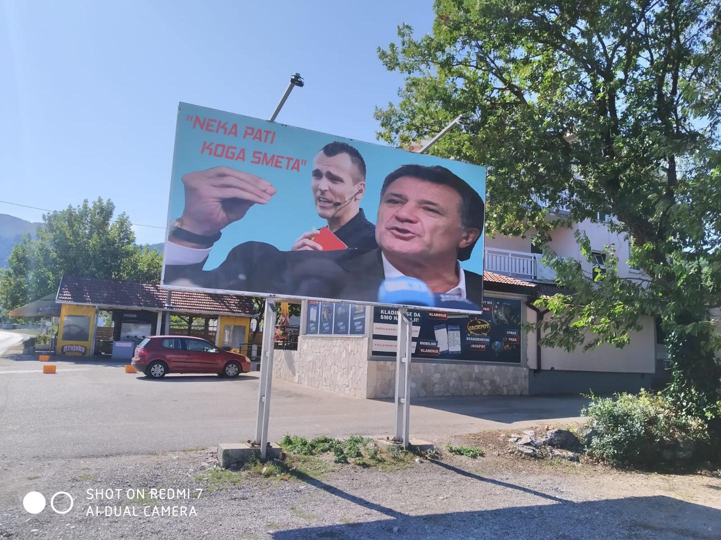 U pograničnom ljubuškom selu Crveni Grm, postavljen je veliki jumbo plakat, veličine 5x2,5 m, potpore Zdravku Mamiću i Ivanu Bebeku.