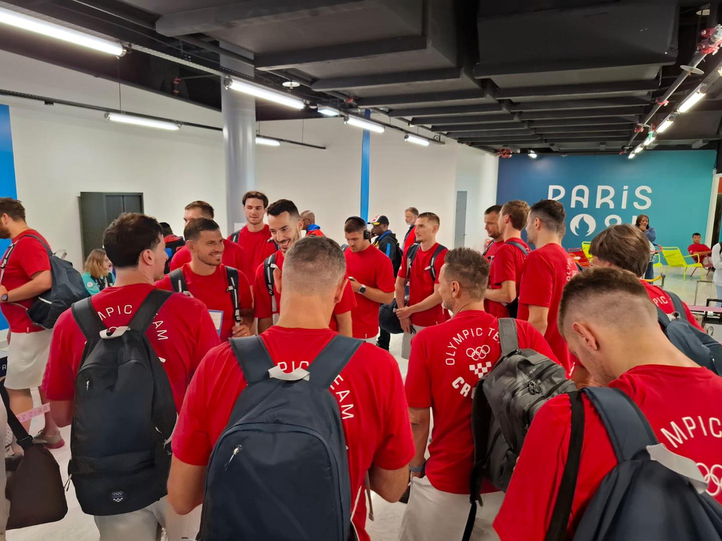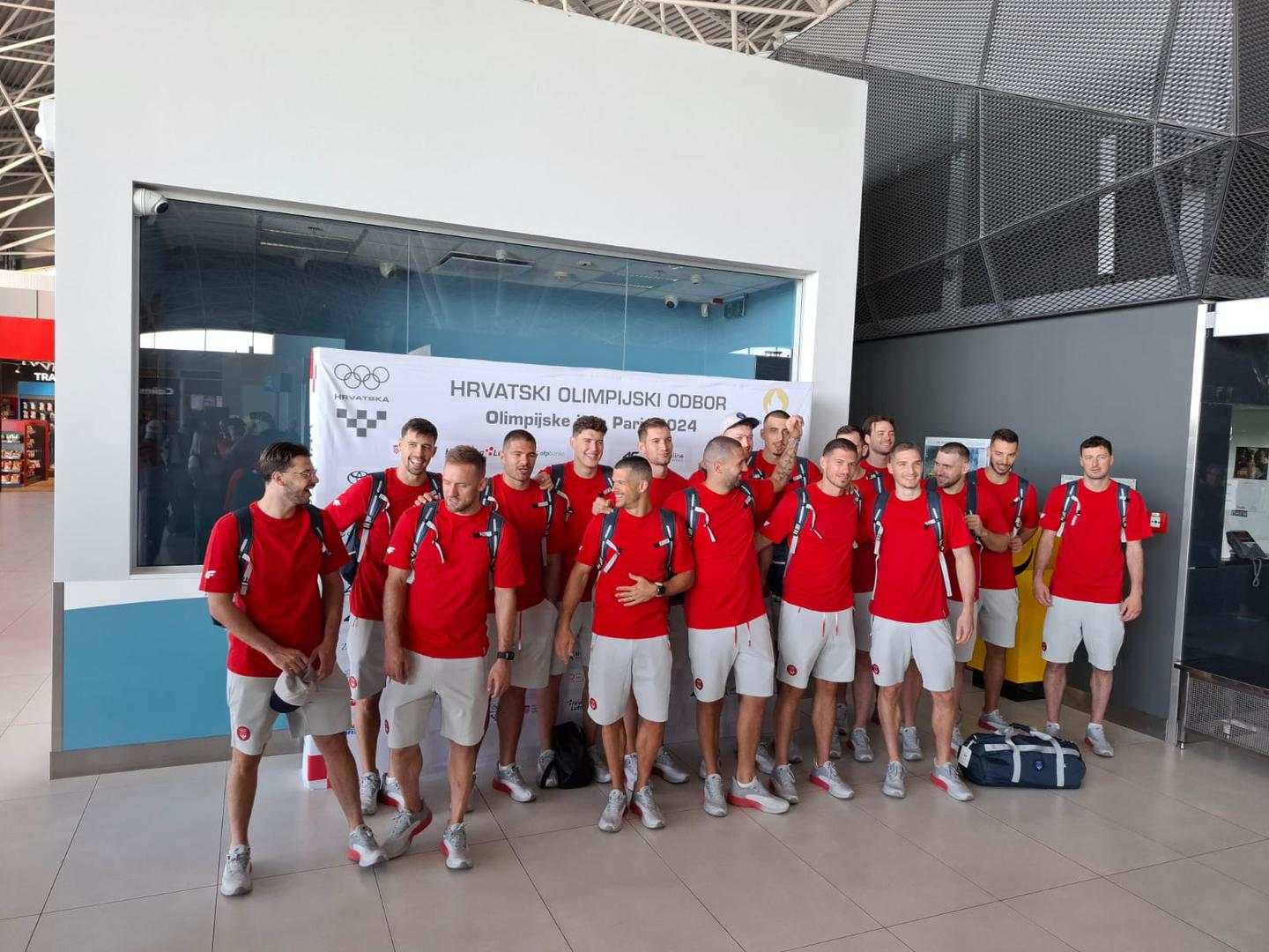 Vaterpolisti u zračnoj luci Zagreb. Danas u Pariz putuje najveći kontigent hrvatskih olimpijaca: vaterpolisti, rukometaši i stolnoteniski ujutro u 9 sati, a popodne tenisačica  Pavić i Mektić te plivač Nikola Miljenić.