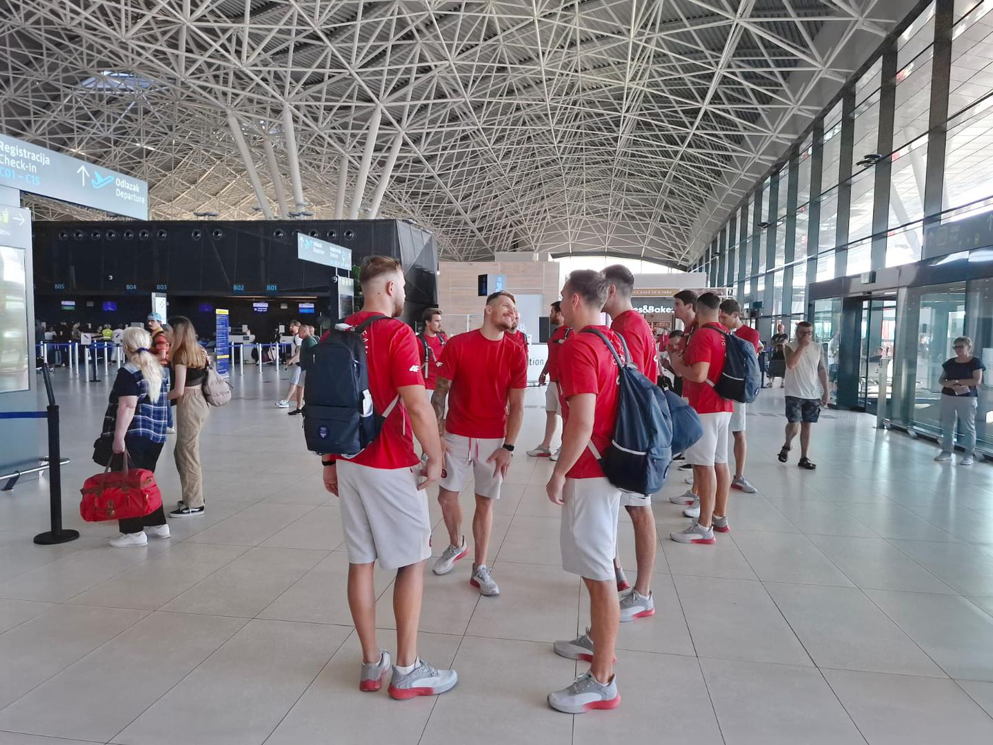 Vaterpolisti u zračnoj luci Zagreb. Danas u Pariz putuje najveći kontigent hrvatskih olimpijaca: vaterpolisti, rukometaši i stolnoteniski ujutro u 9 sati, a popodne tenisačica Pavić i Mektić te plivač Nikola Miljenić.