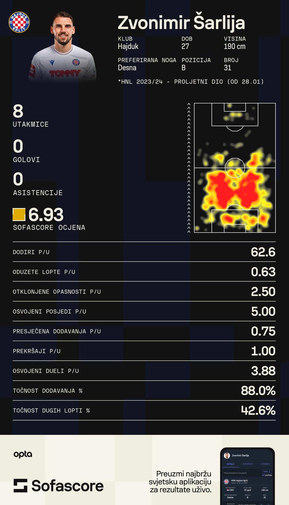 Kako bilo da bilo, dojma smo da je Šarliju, 27-godišnjaka rodom iz Koprivnice gotovo nemoguće pravosnažno zamijeniti u ovome trenutku. Ove jeseni spominjalo ga se i u kontekstu poziva u hrvatsku reprezentaciju, a Šarlijine predstave su u pojedinim utakmicama bile uistinu impozantne. Mnogi će reći da je ovoga proljeća malko posustao, da to više nije onaj Šarlija od jeseni, no brojke su, kao što se može vidjeti i ove polusezone iznimno korektne.