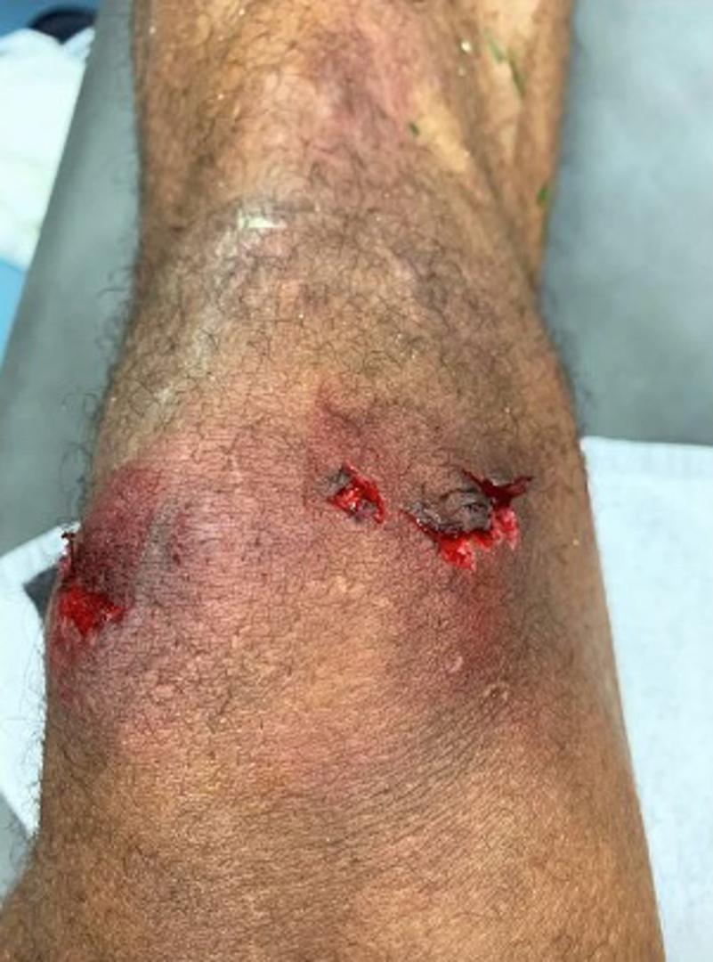 Varane je nakon susreta na Instagramu objavio fotografiju koljena na kojemu je na nekoliko mjesta oguljena koža.
