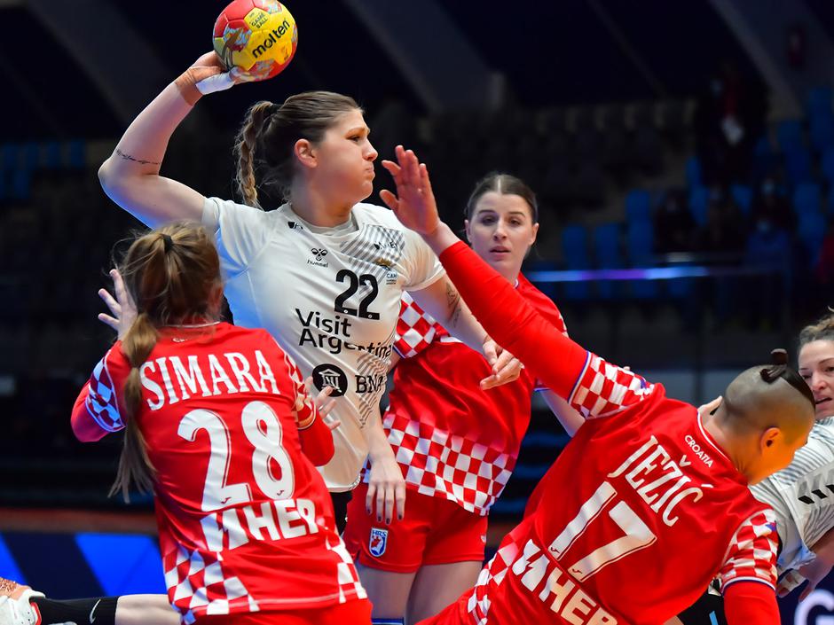 Hrvatske rukometašice dobro su krenule u susret, povele su 9:5, no od 18. minute postigle su samo tri, a primile čak devet golova, pa je Argentina na poluvremenu imala vodstvo 14:12. U nastavku susreta Hrvatska je uspjela preokrenuti rezultat i u zadnjih 10 minuta izboriti pobjedu.