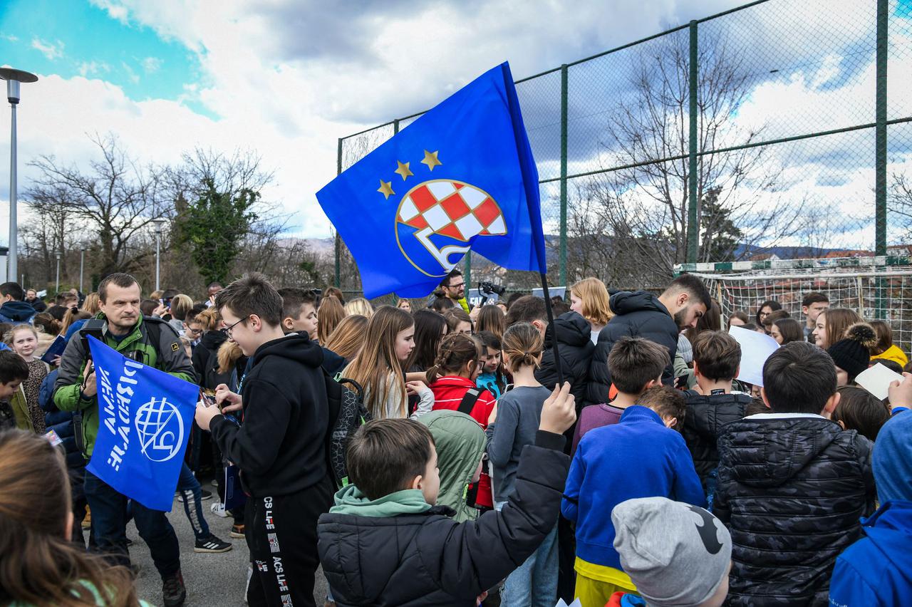 Kadzior, Moro, Gvardiol, Kulenović, Majer, Ivanušec, Theophile i Đira posjetili su tu školu smještenu malo sjevernije od maksimirskog stadiona u sklopu kampanje “Fair-play na tribinama” i premijerno predstavili slikovnicu i bojanku za djecu na temu pozitivnog ponašanja na nogometnoj utakmici. Lovili su klinci igrače na igralištu, tražili ih autograme, fotografije, zastavice i bojanke.