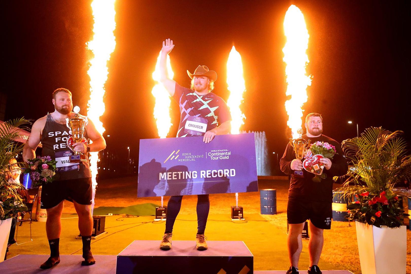 Prošle godine je Crouser u Zagrebu bacio 22.74, što je bio najbolji hitac na tlu Europe u posljednjih 30 godina. U međuvremenu je taj "rekord" otišao u Lausanneu (22.81), no od danas je ponovo u Zagrebu. Dodajmo, kako je Crouser u lipnju ove godine u Eugeneu u američkoj saveznoj državi Oregon postavio novi svjetski rekord 23.37.