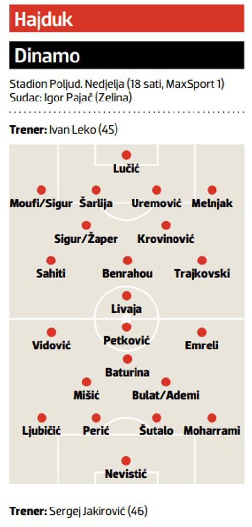 Što se tiče sastava, Leko ima dvije dvojbe. Hoće li na desnom beku igrati Moufi ili Sigur te hoće li zadnji vezni uz Krovinovića biti Sigur ili Žaper.