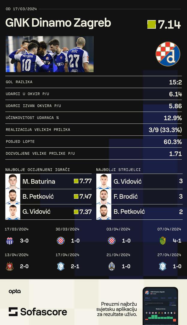 Na kraju krajeva, pratitelji Dinama neće prihvatiti ni cijeniti ovu sjajnu proljetnu formu ako ona plave ne dovede do ultimativnog cilja, a to je naslov prvaka u HNL-u. Međutim, mi van navijačkih okvira i preferenci možemo objektivno zaključiti da je, bez obzira na završni ishod sezone, ovaj niz Dinama bio fantastičan te da svakako treba cijeniti kako su Sergej Jakirović i igrači preokrenuli sezonu iz totalne propasti sve do situacije gdje za naslov odlučuju sami o sebi. Gledajući na situaciju iz prosinca i siječnja, nije bilo lako doći do toga.